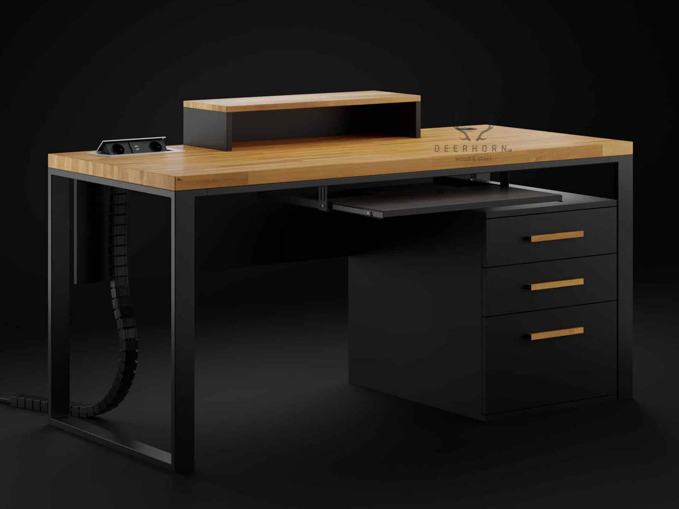 The extension fits perfectly with lot, industrial and Scandinavian desks with wooden tops.