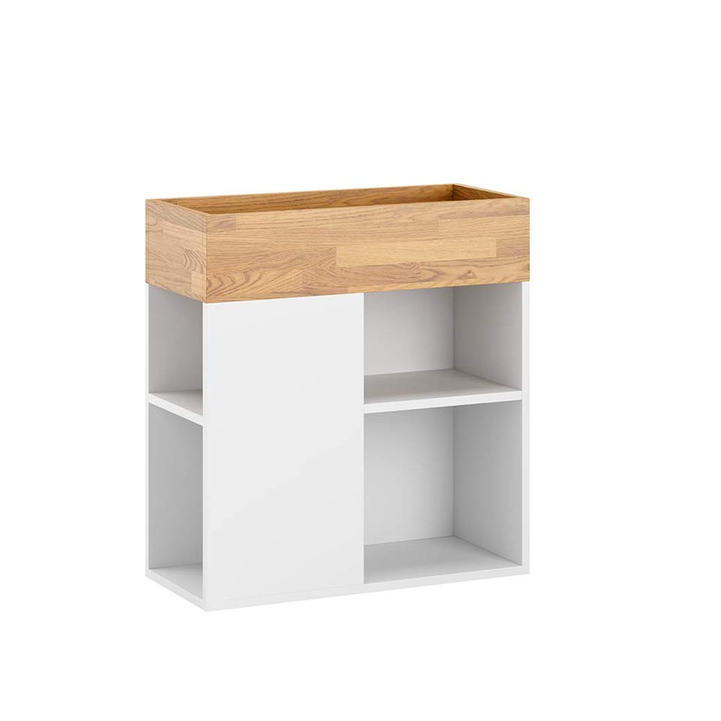 This elegant flowerbed in the shade of natural oak with a white base is the perfect combination of style and practical use in the office. The upper part was designed for potted plants, which bring freshness and a friendly atmosphere to the workplace. The lower shelves will accommodate books, binders and decorations, helping to keep your daily routine tidy.