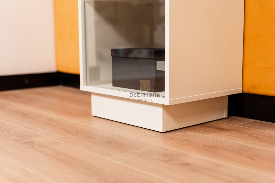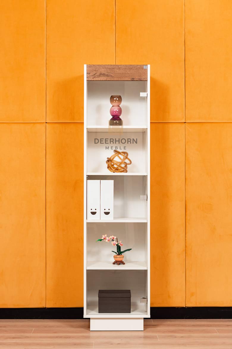 The display case is an ideal piece of furniture for those who want to highlight their achievements and professionalism in the office or home office. The glass door allows you to display awards, statuettes or professional literature, while protecting them from dust. The wooden trim on top gives the display case a unique touch, while the slightly tapered base provides visual lightness.