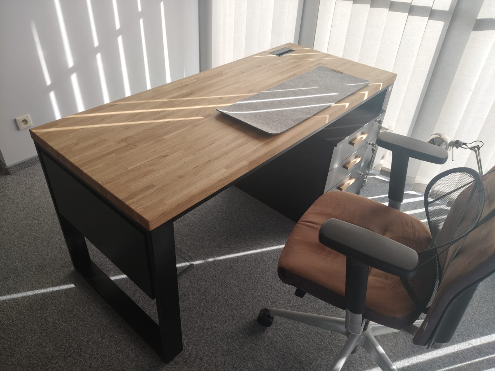 Industrial loft desk with drawers. Oak top 160 cm x 70 cm. Blum drawers