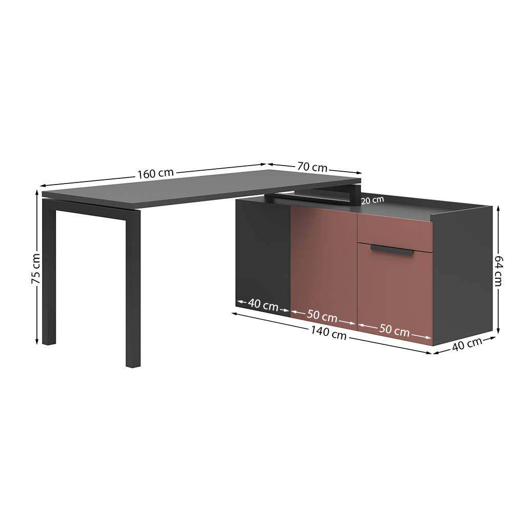 The corner design not only saves space, but also provides a convenient setting in the office, allowing free access to each item. Stable frame and high-quality materials guarantee that the desk will serve for years of intensive use.