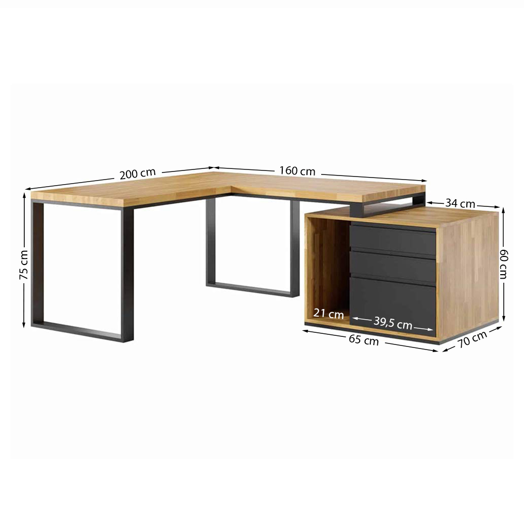 For the sake of your convenience, we ship the desks as a whole. The corner desk consists of a 200×70 main desk, a 90x70cm extension desk and a pedestal. All you need to do is put these three elements together. The advantage is that it saves a great deal of time.
