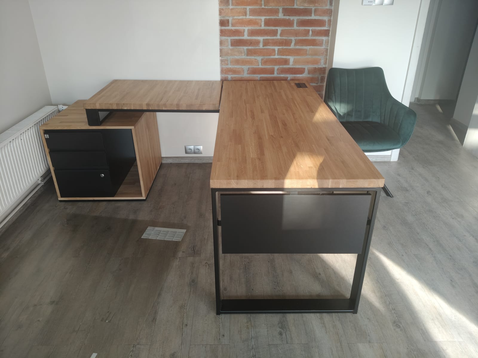 3. A desk with a storage unit is a very convenient solution for everyday work. All your documents and small items are within easy reach, and the desk surface stays tidy. The structure is sturdy, and the whole thing looks neat and professional. It works great