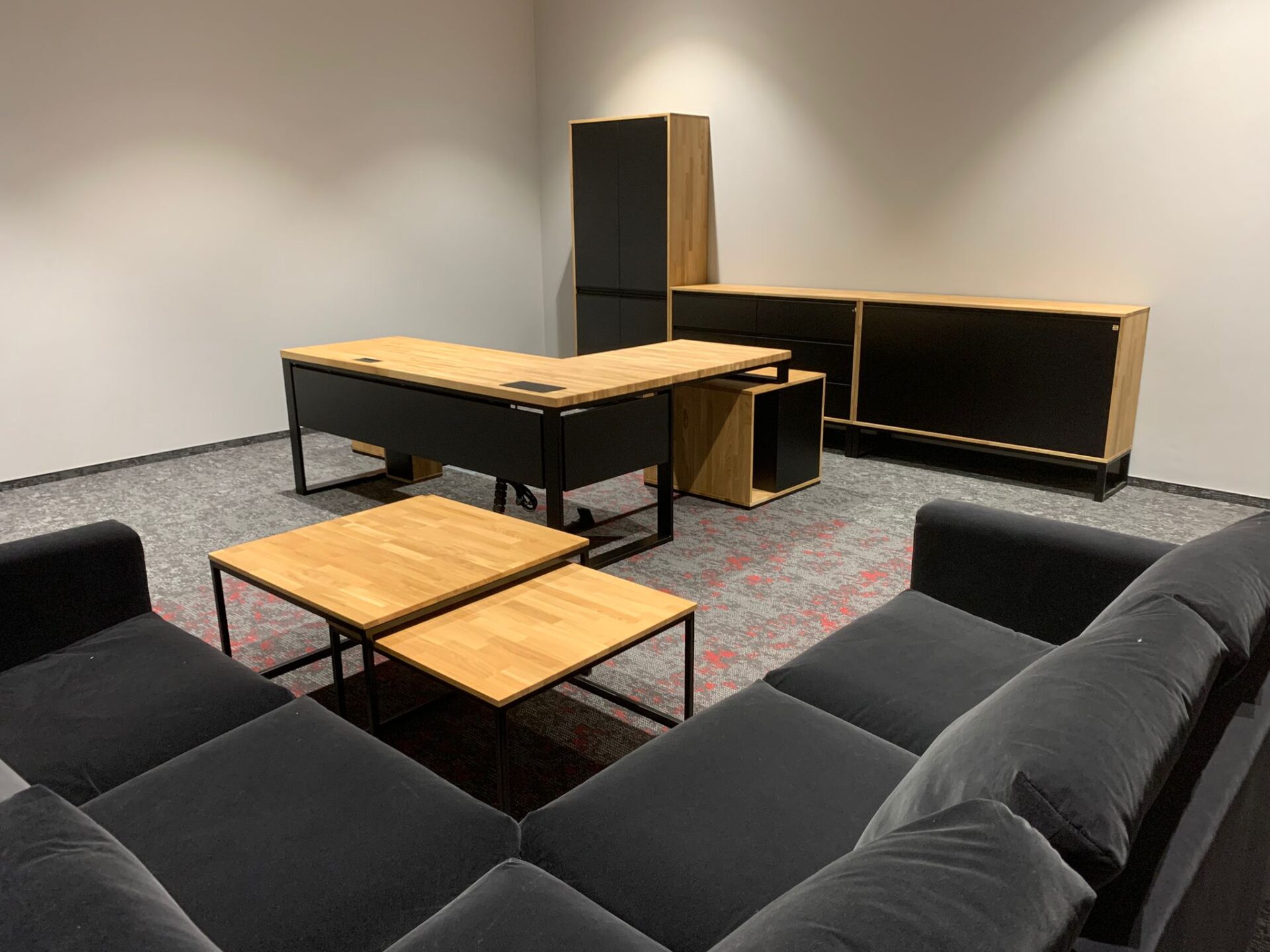 We send all furniture assembled on pallets, except for corner desks and large conference tables, where they require a small assembly on site.
