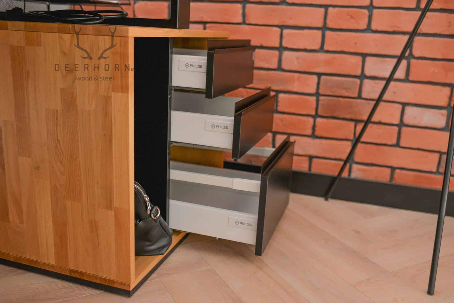 The black-wood desk is a timeless form in a classic version, which is perfect for any design office. This unusual combination of black and wood adds a unique character to the space, blending perfectly with modern interior design. With its elegance and unique design, the black-wood desk from Deerhornwill become the center of your efficiency at work!