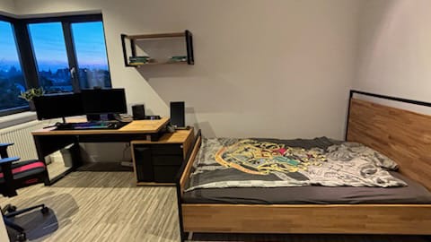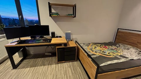 Minimalist and designer desk with wooden top