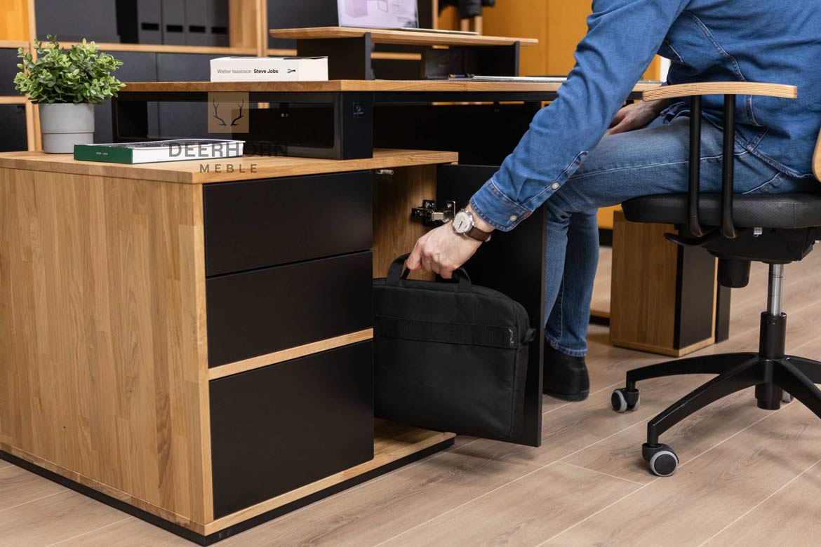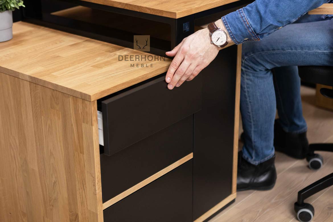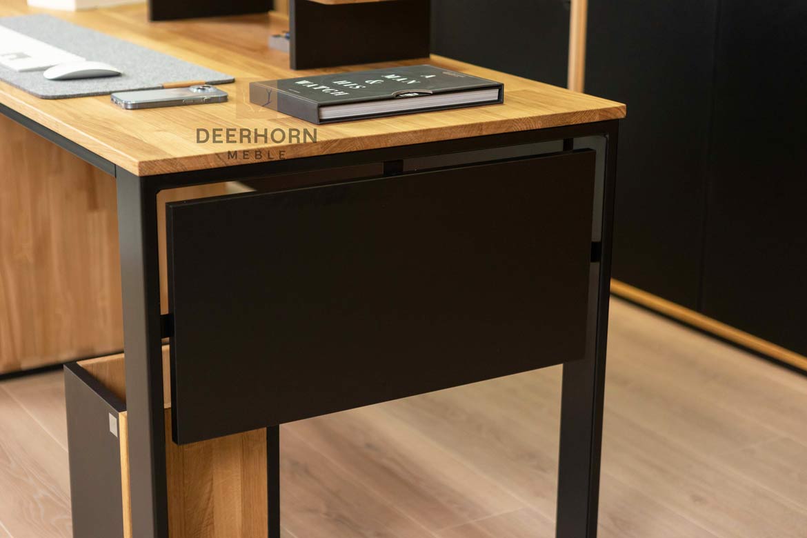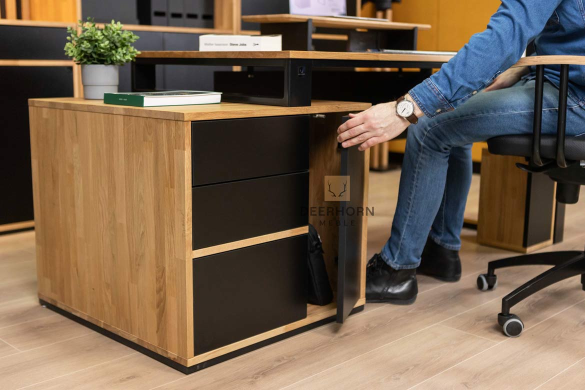 The desk is available in black and white. When purchasing, also specify in the comments whether the desk is to be left or right. (right means that the pedestal with drawers is on the right side looking from the perspective of the person sitting at the desk)