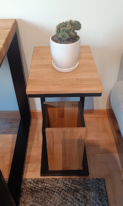 The loft auxiliary table ranks high in terms of daily use. It is most often used in the living room while reading a book. Useful when using a laptop at home on the couch. The wood and metal auxiliary table from the looks of it, is a simple metal construction with a wood panel. In practice, it is a very useful and practical piece of furniture that perfectly fulfills its function. Extremely practical auxiliary table is available in two colors: black and white.