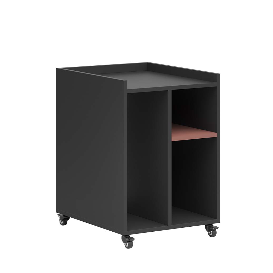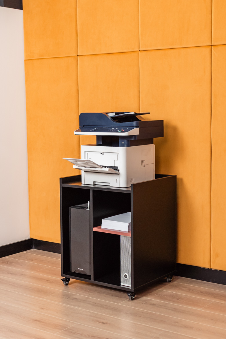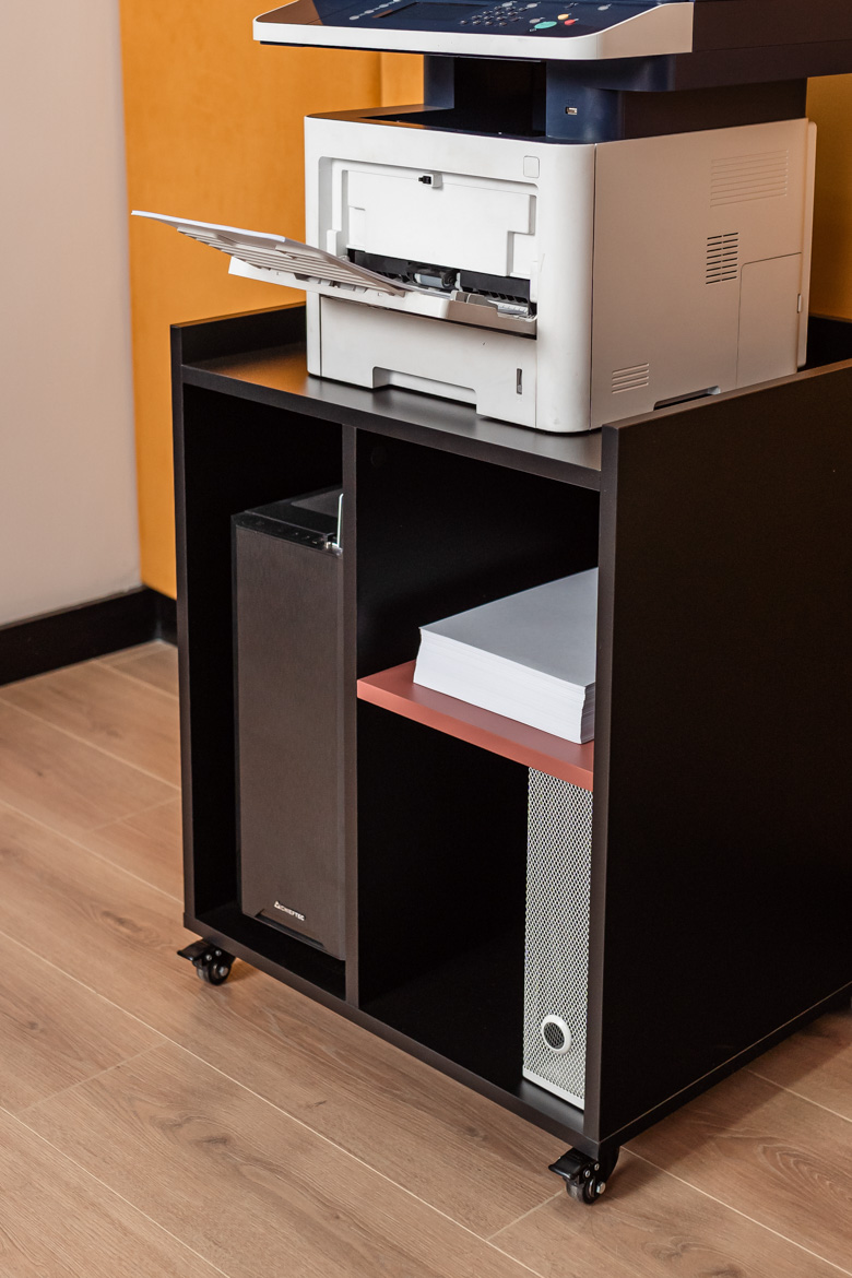 Designed with everyday convenience in mind, it is equipped with open shelves that allow you to have everything at hand – without unnecessary searching. Locking casters allow the furniture to be quickly rearranged depending on the layout of the office or the momentary needs of the team.