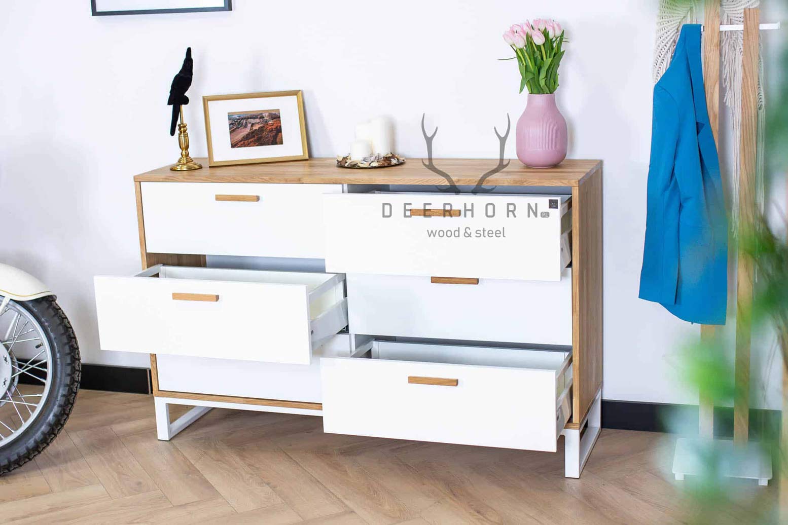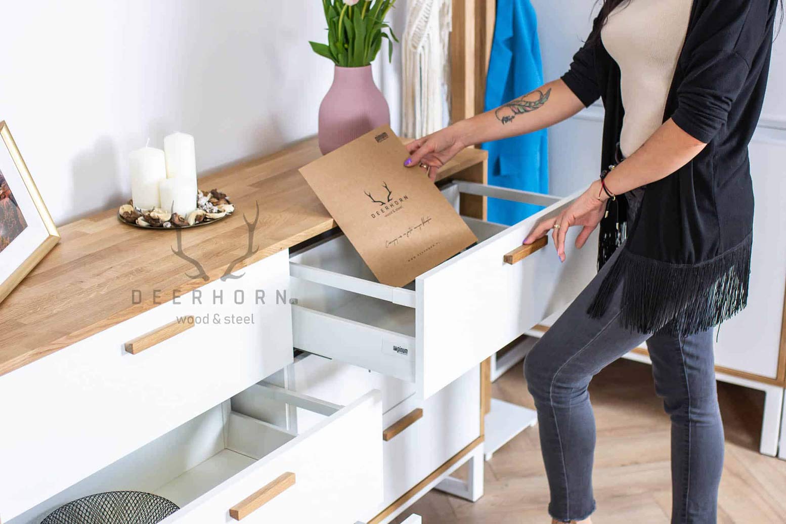 A loft bookcase with shelves that can hold a stack of binders or books, binder chests for the office that accommodate sizable amounts of documents – also available with drawers (optionally with a lock) – or wood metal desks in loft style, industrial style in the version with a mobile container, or appearing individually. There was also a multifunctional office cabinet with shelves – either on a metal base or without it. With such an assortment, furnishing your own office or study is a pleasure. Moreover, working in such a place brings a lot of satisfaction, which translates into better results. Feel the elegance and sophistication in your own skin with furniture from Deerhorn.