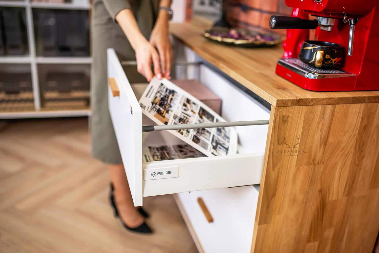 Thanks to the use of brand Rejs slides, opening is a pleasure. Noiseless closing of drawers, is the result of the silent closing system.