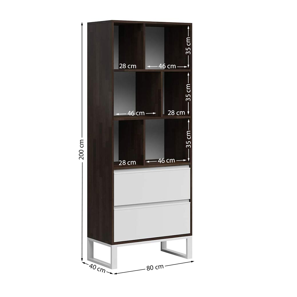 Office bookcase ebony shelves and two drawers