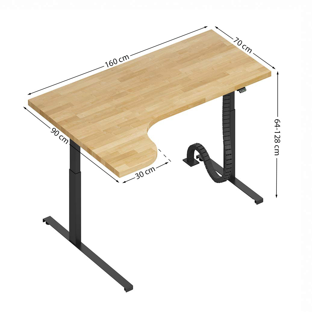 Ergonomic desk with height adjustment and figure cutout