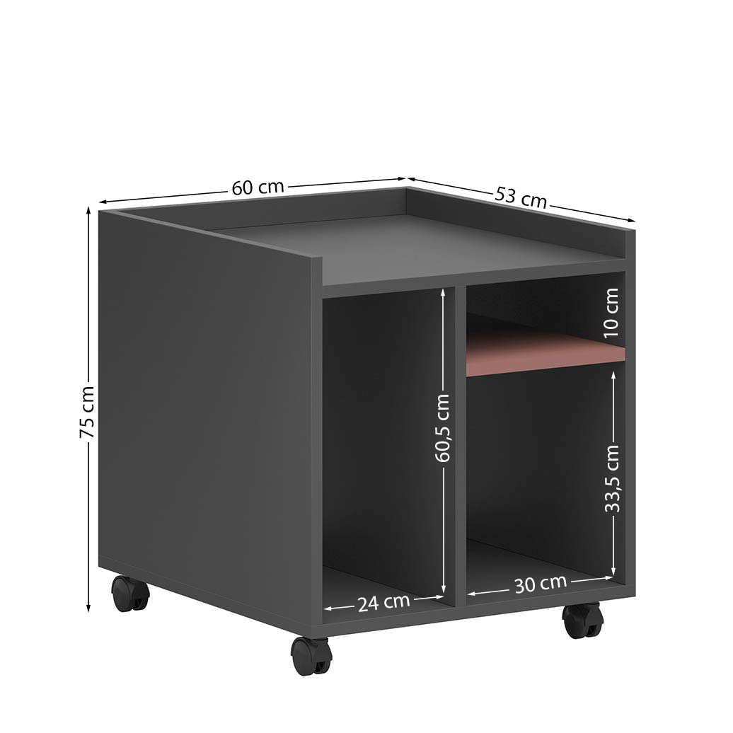 Equipped with open shelves, it allows convenient storage of paper, documents or office accessories. Thanks to the installed casters, the cabinet can be freely moved, adjusting its position to the current needs of the team or workstation.