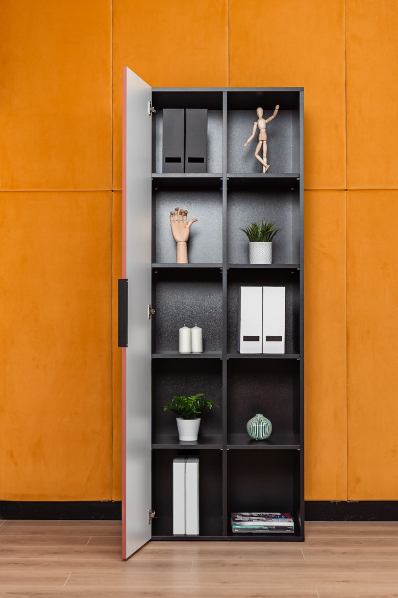 The bookcase will work well both at the workstation and in common spaces – where you need good style and practical storage in one.