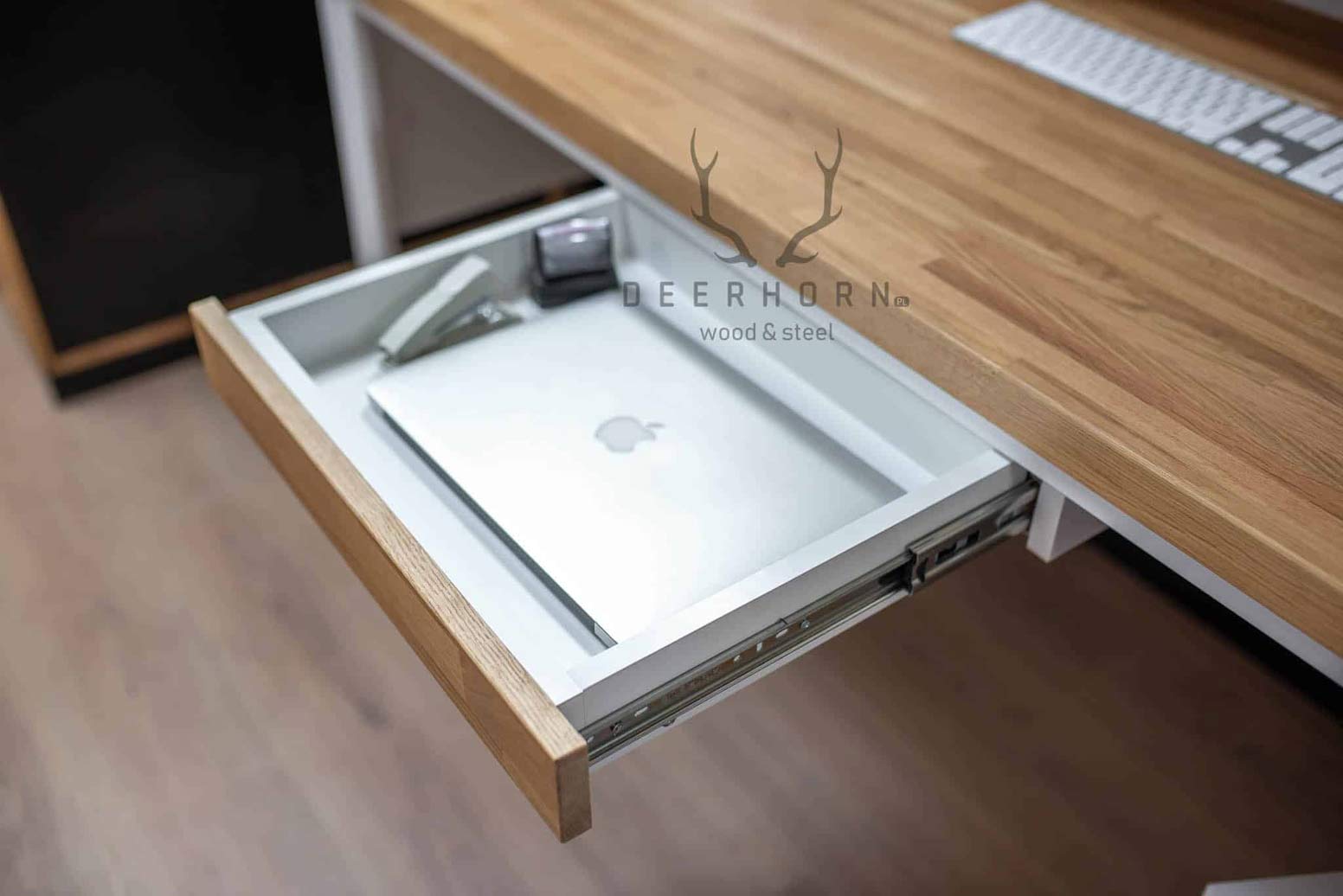 The drawer is dedicated only to the collection: Loft Office, Loft Office Plus, Loft Office Slim, Modern Office. When buying a desk and a drawer at the same time, the installation service is free of charge. If you purchase the drawer alone, on-site installation involves only attaching the drawer to the bottom of the wooden top. The draw er is shipped as a whole.