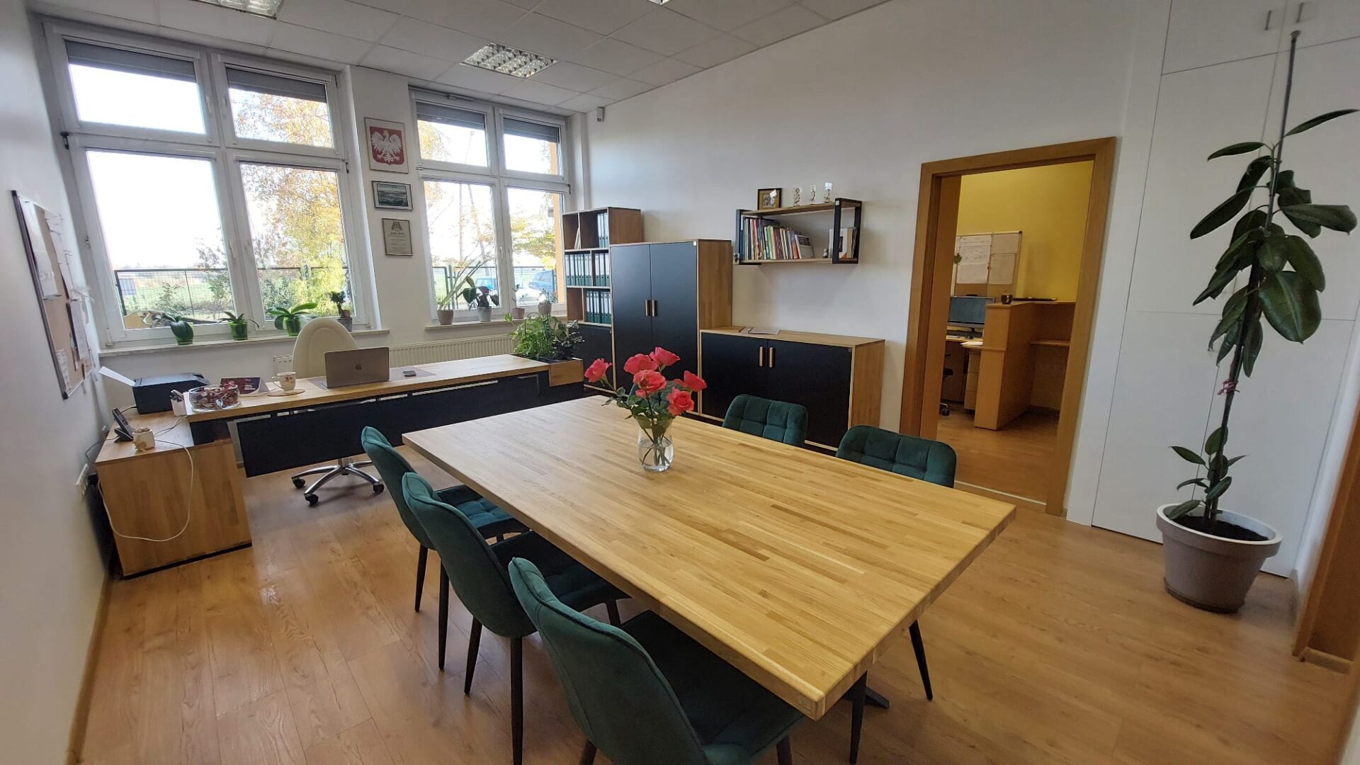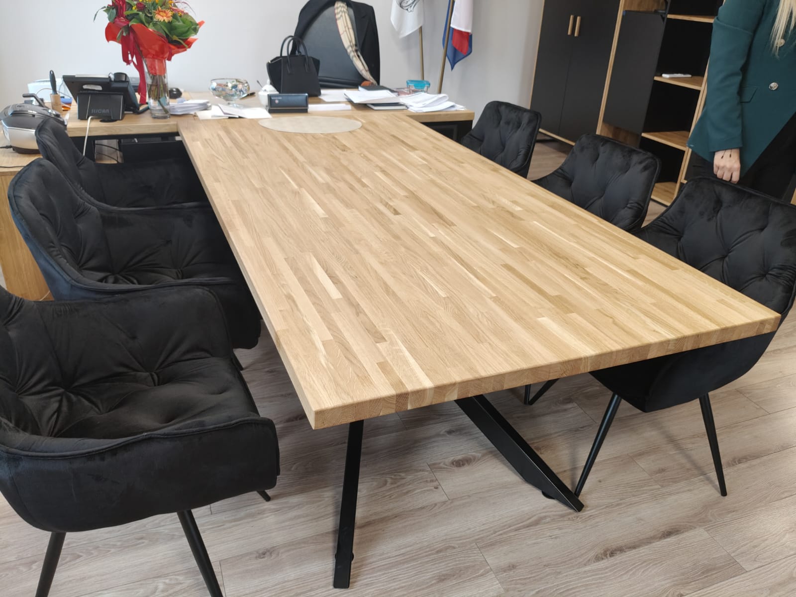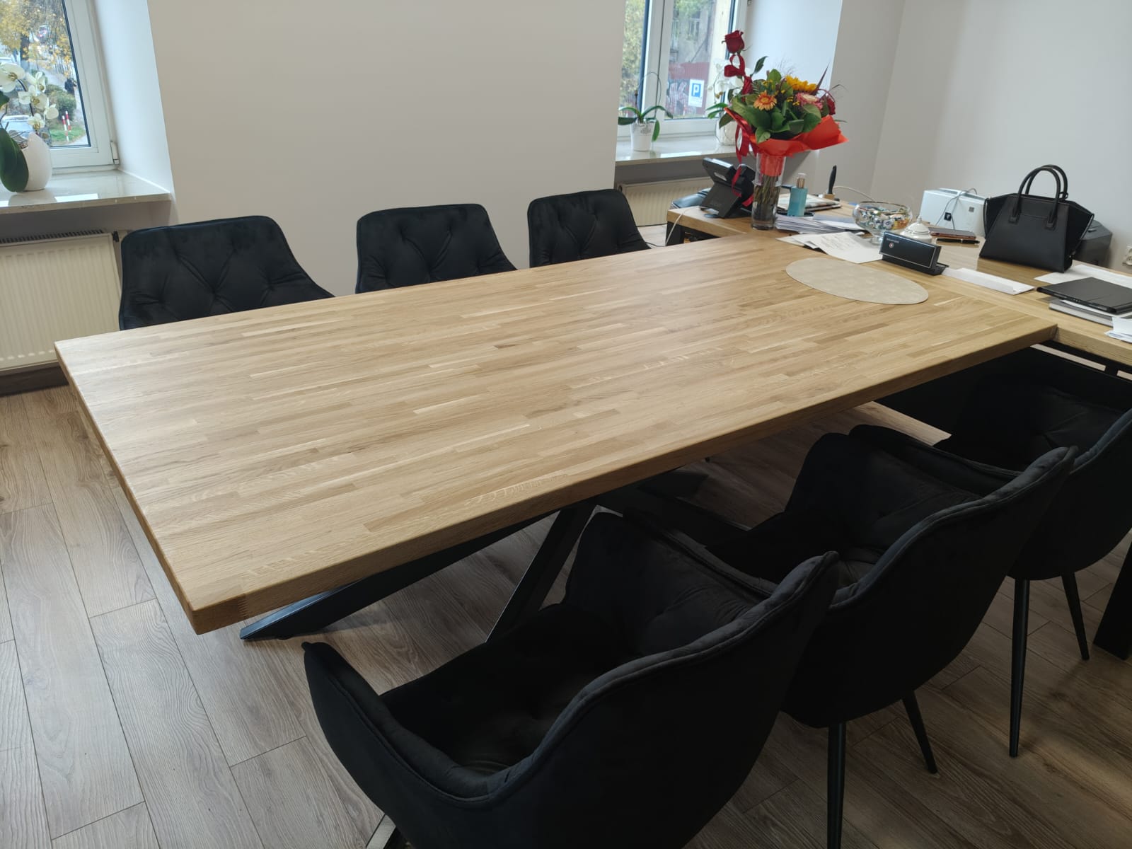 This office desk works very well; it’s comfortable for meetings and everyday work