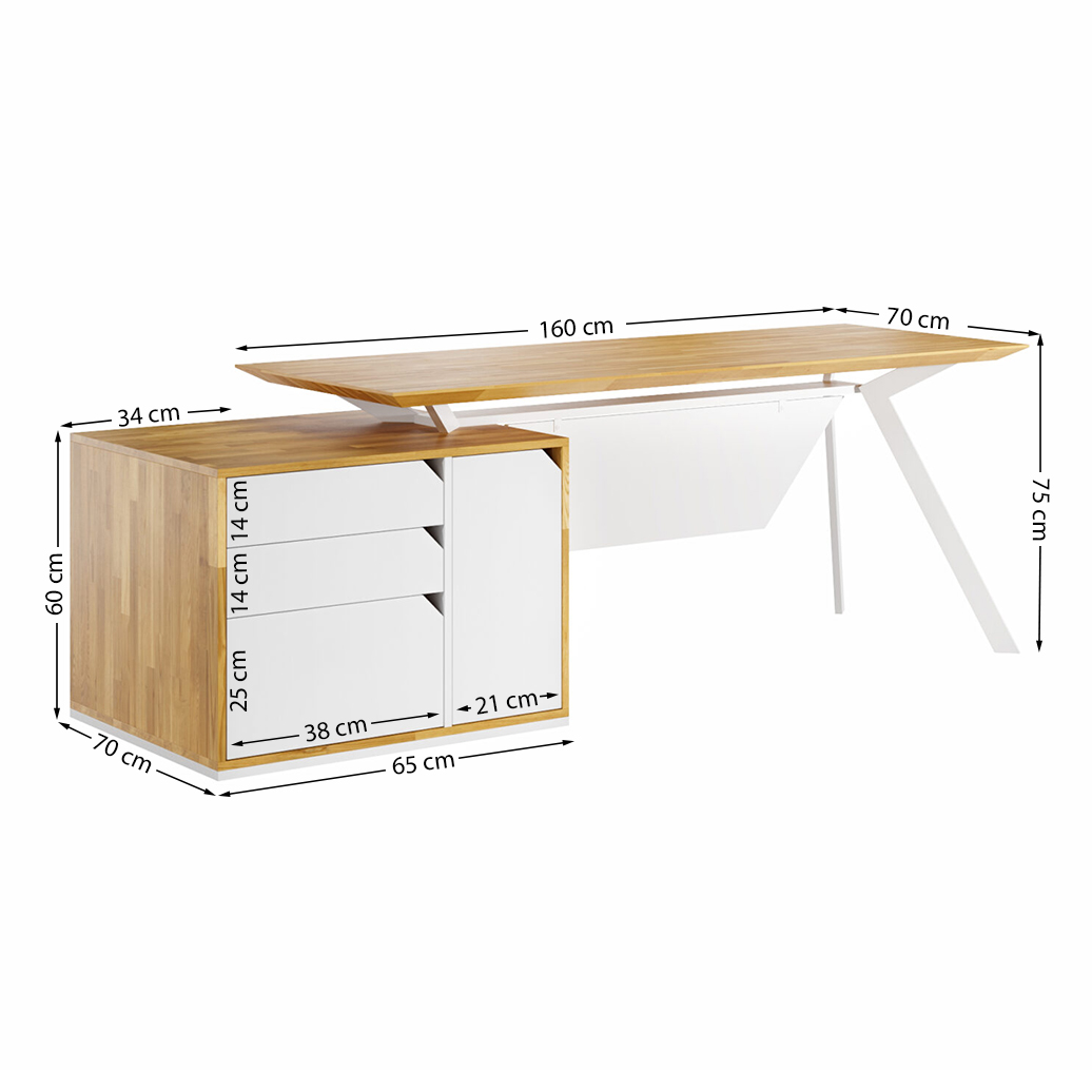 White cabinet desk with drawers with wooden top Active 160x70cm