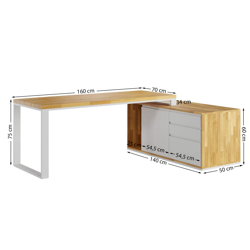 - The total length of the desk with the pedestal with the dimension of the main top of 160 cm is about 194 cm.