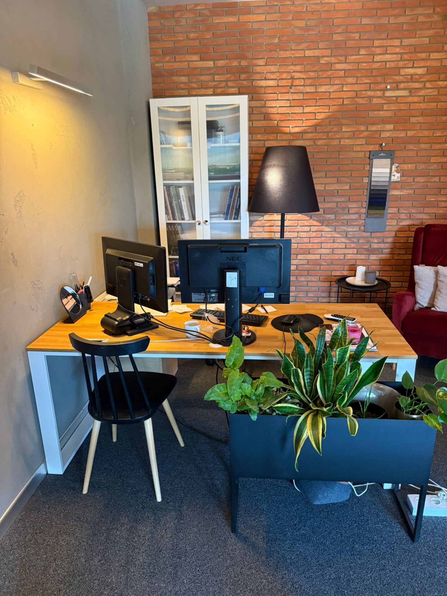 This desk just looks good and feels calm. It has great proportions—it doesn’t overwhelm the room, yet it provides a comfortable workspace. The desktop is sturdy, everything stands firmly in place, and nothing wobbles. The handy drawer does the trick—keeping things organized is a breeze. It’s the kind of desk that just makes you want to sit down and get some work done.