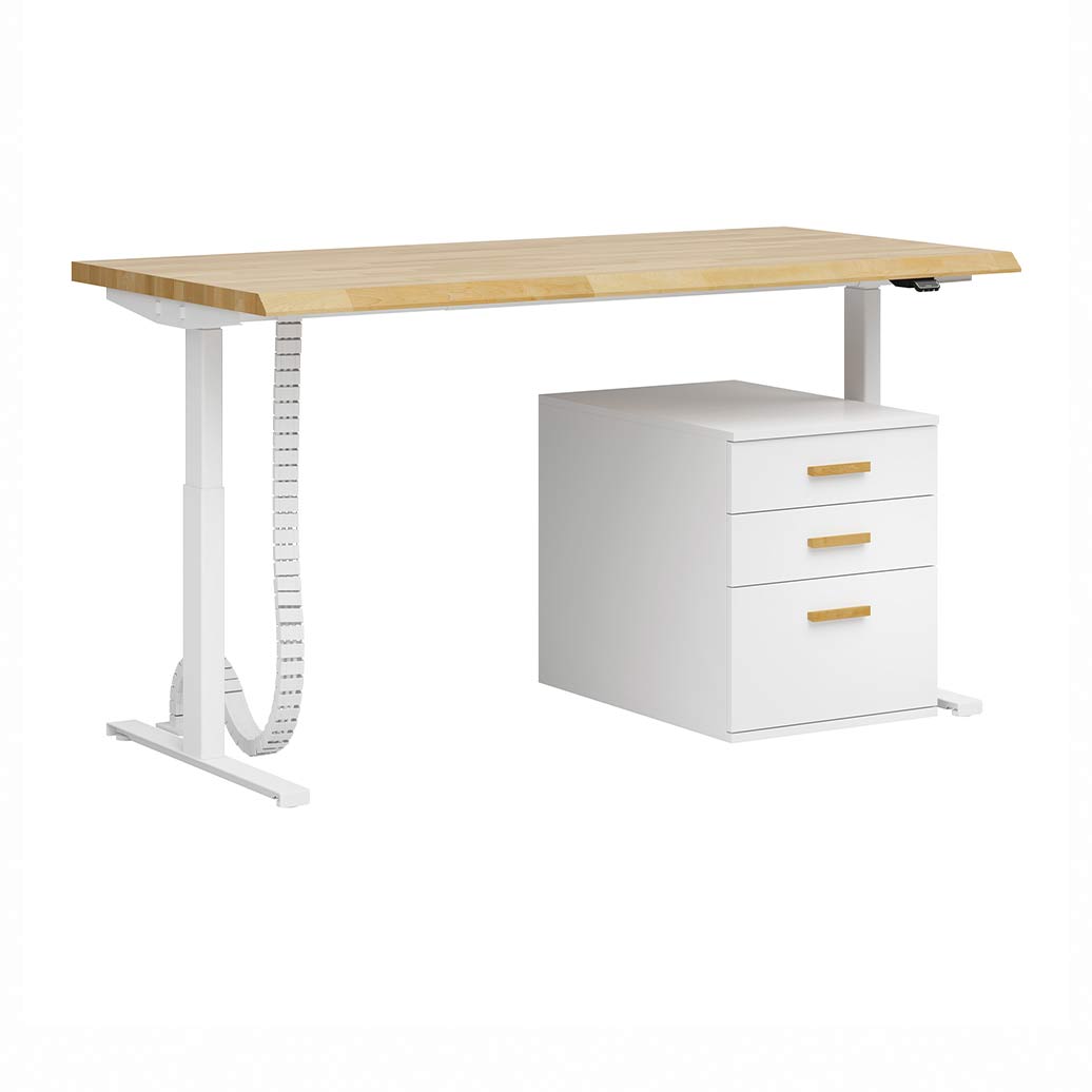 White electric desk and white pedestal. Ergonomic table top 170x80cm