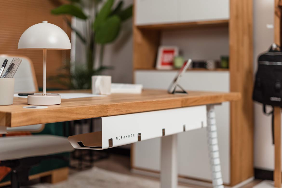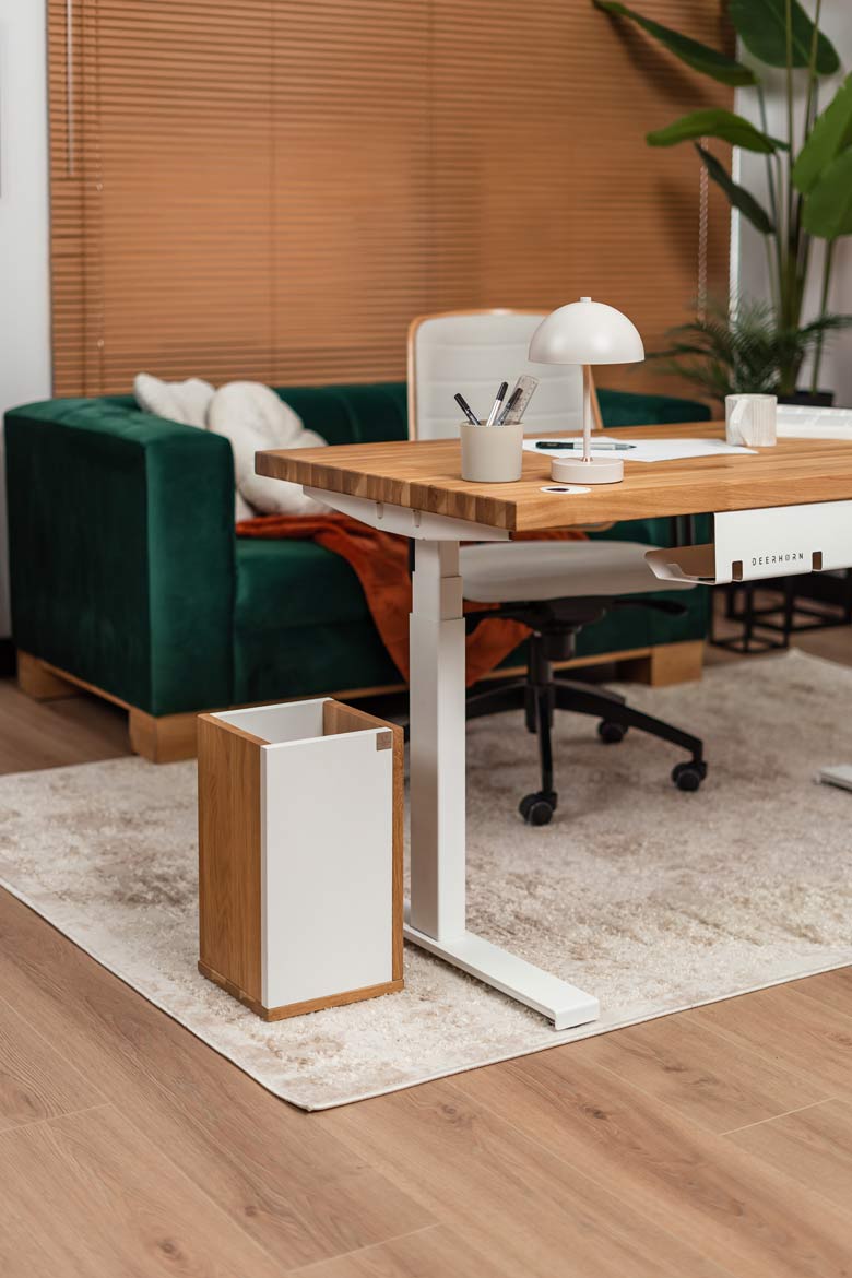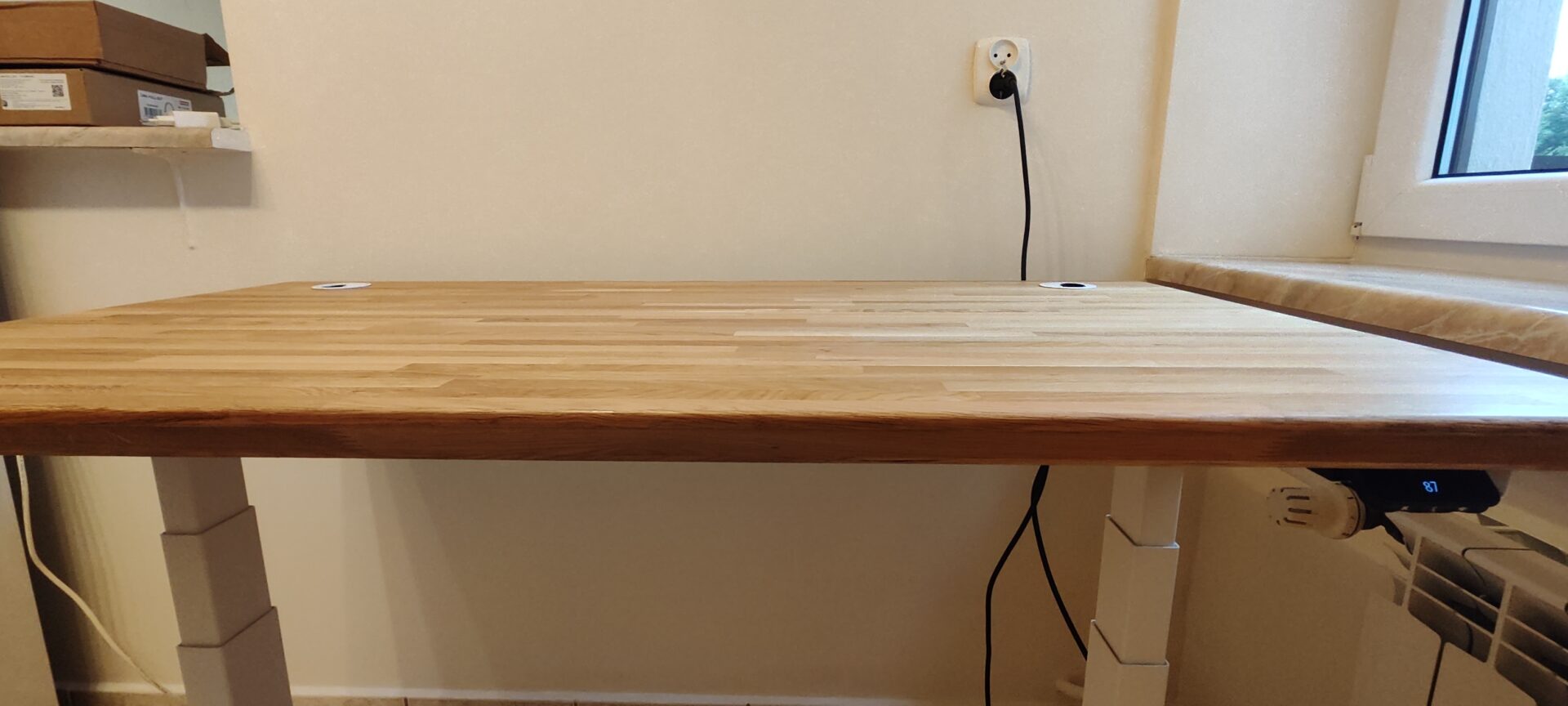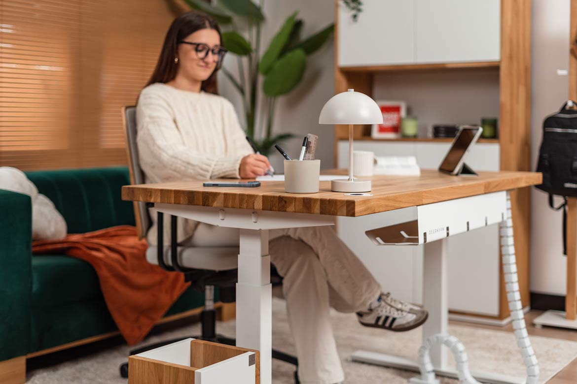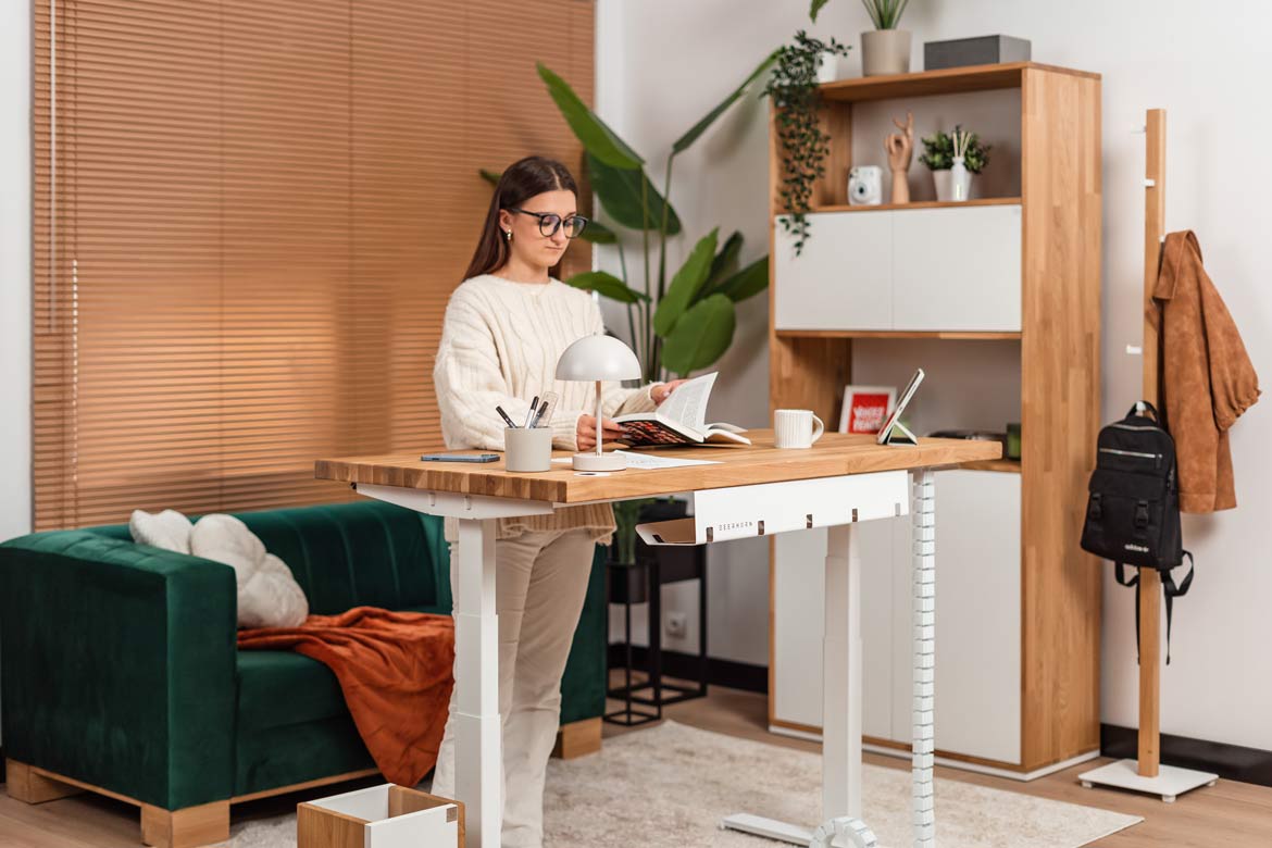 Biurko z regulacją wysokości to jeden z najlepszych zakupów do mojego domowego biura. W połączeniu z naturalnym drewnem prezentuje się naprawdę świetnie.