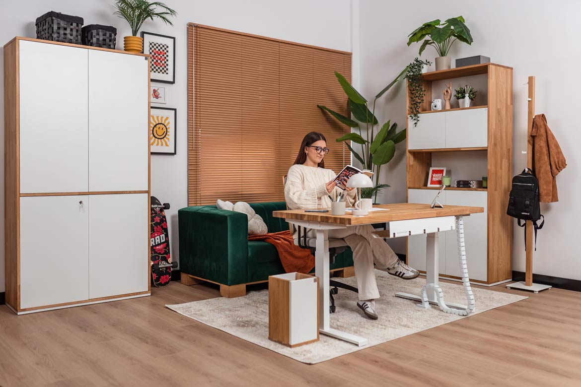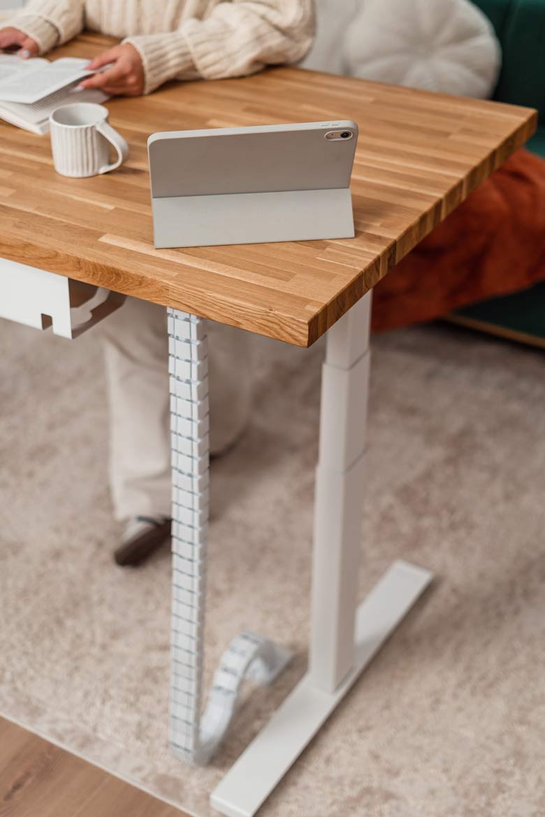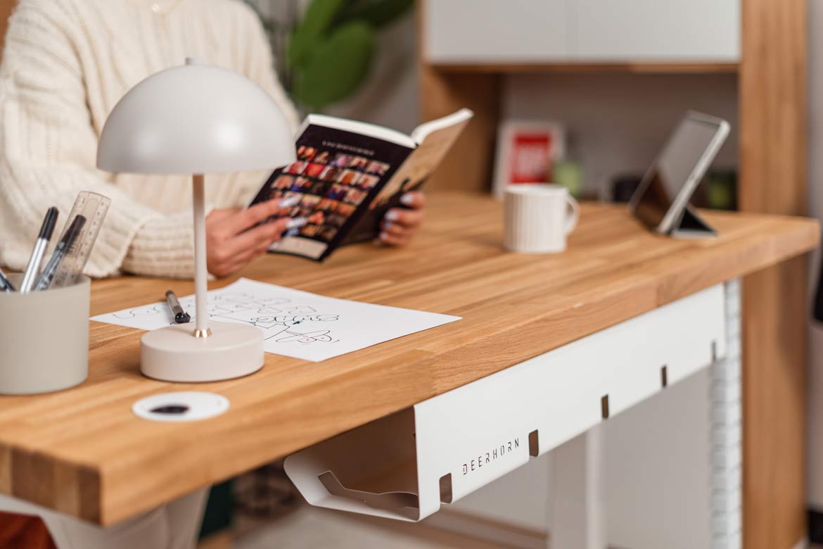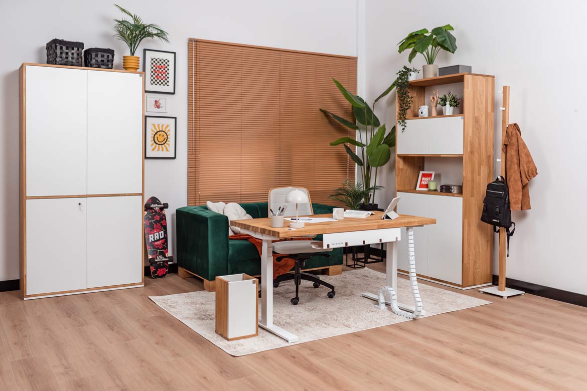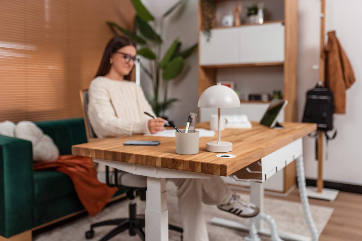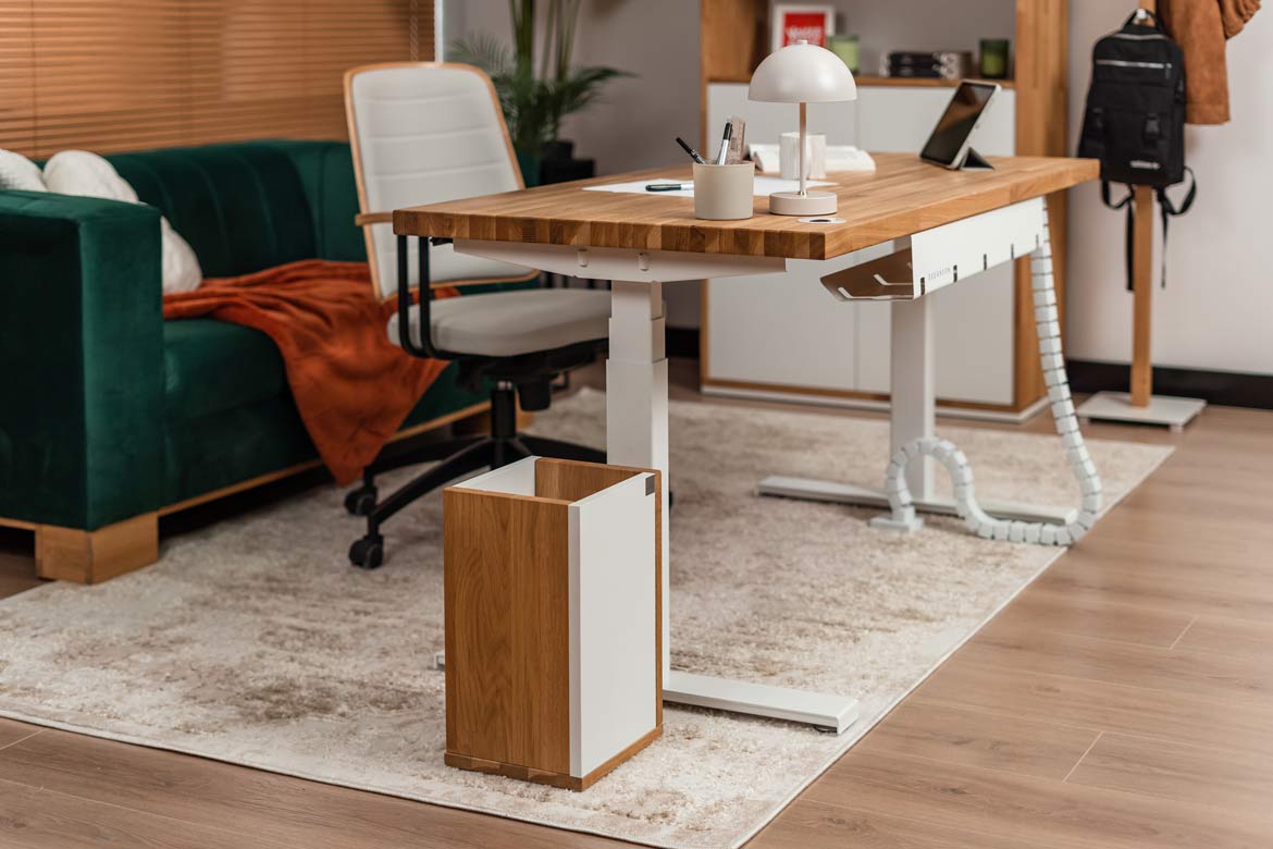Biurko z regulacją wysokości to jeden z najlepszych zakupów do mojego domowego biura. W połączeniu z naturalnym drewnem prezentuje się naprawdę świetnie.