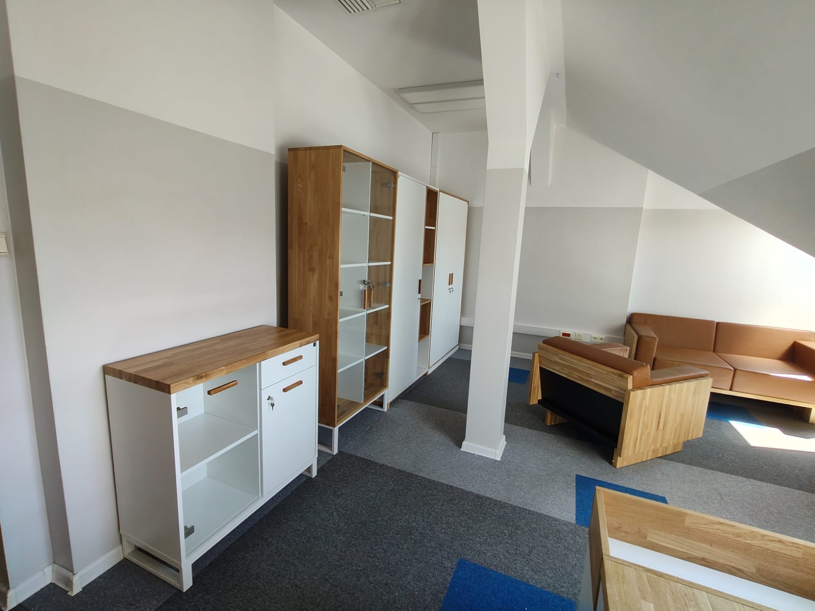 1. Meble prezentują się bardzo solidnie i estetycznie. Widać dobrą jakość wykonania i dbałość o detale, a całość jest funkcjonalna i dobrze zaplanowana. Świetnie pasują do przestrzeni i robią naprawdę profesjonalne wrażenie