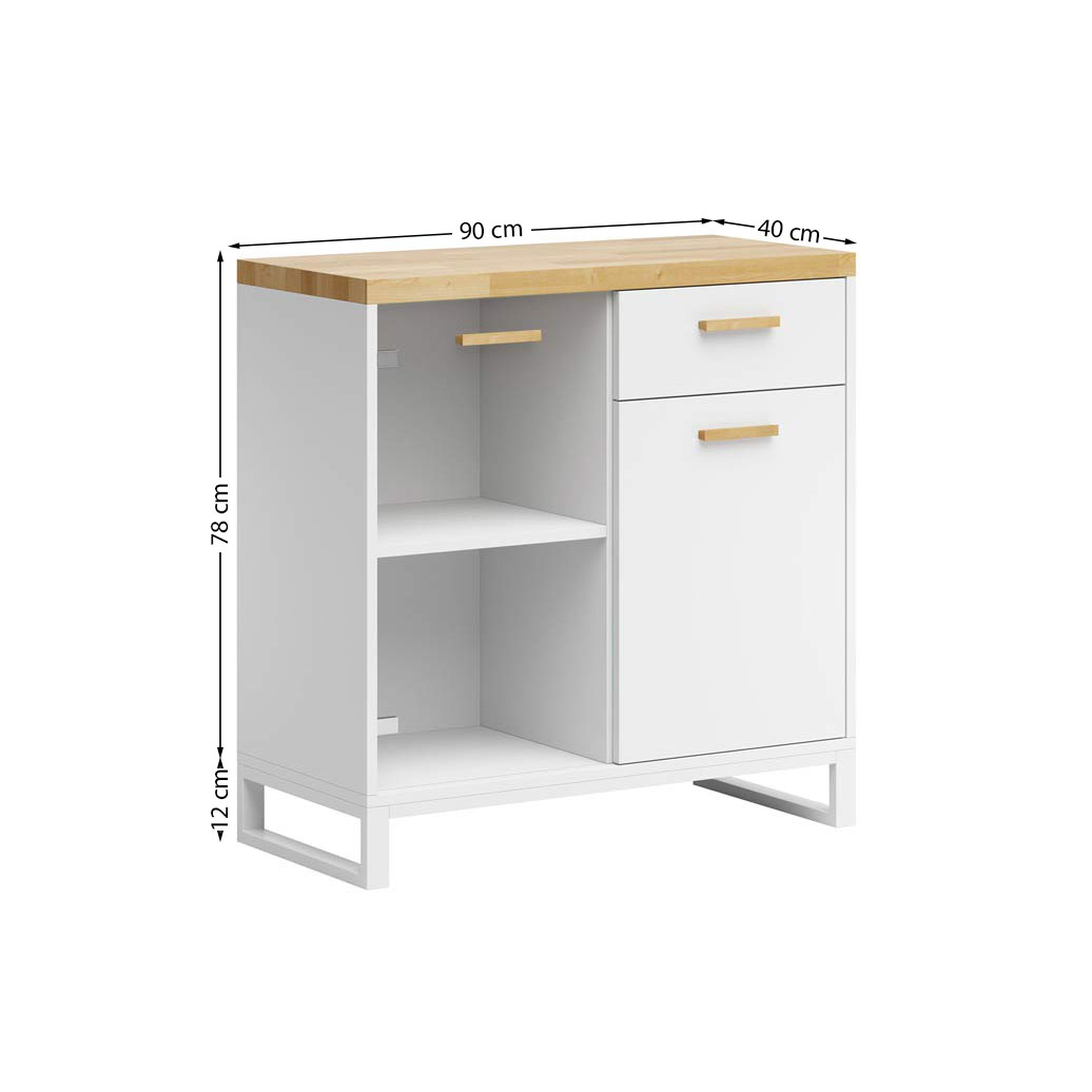 As a Polish manufacturer of industrial, loft and Scandinavian style furniture, we also made sure to include a white coffee maker cabinet. The white coffee maker cabinet was made from the highest quality materials. The top made of natural oak wood and the oak handles combined with the white body look very impressive and elegant.