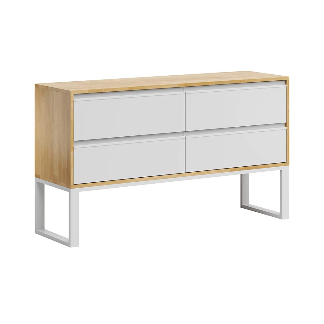 Sophisticated yet elegant – our 140 cm white oak wood office cabinet is the perfect solution for your office. The combination of white and oak adds a modern touch to the interior, while exuding warmth and coziness. The cabinet was carefully designed to provide maximum functionality. Its wooden body lends solidity and durability, while the white surface adds lightness and brightness. Equipped with drawers, our office cabinet allows you to store a variety of documents, office accessories and more. Thanks to its sturdy construction and high-quality materials, you are assured that your important things will be safe and organized. Not only practical, but also aesthetically pleasing – our office cabinet is the perfect complement to a modern office that reflects both professionalism and style.