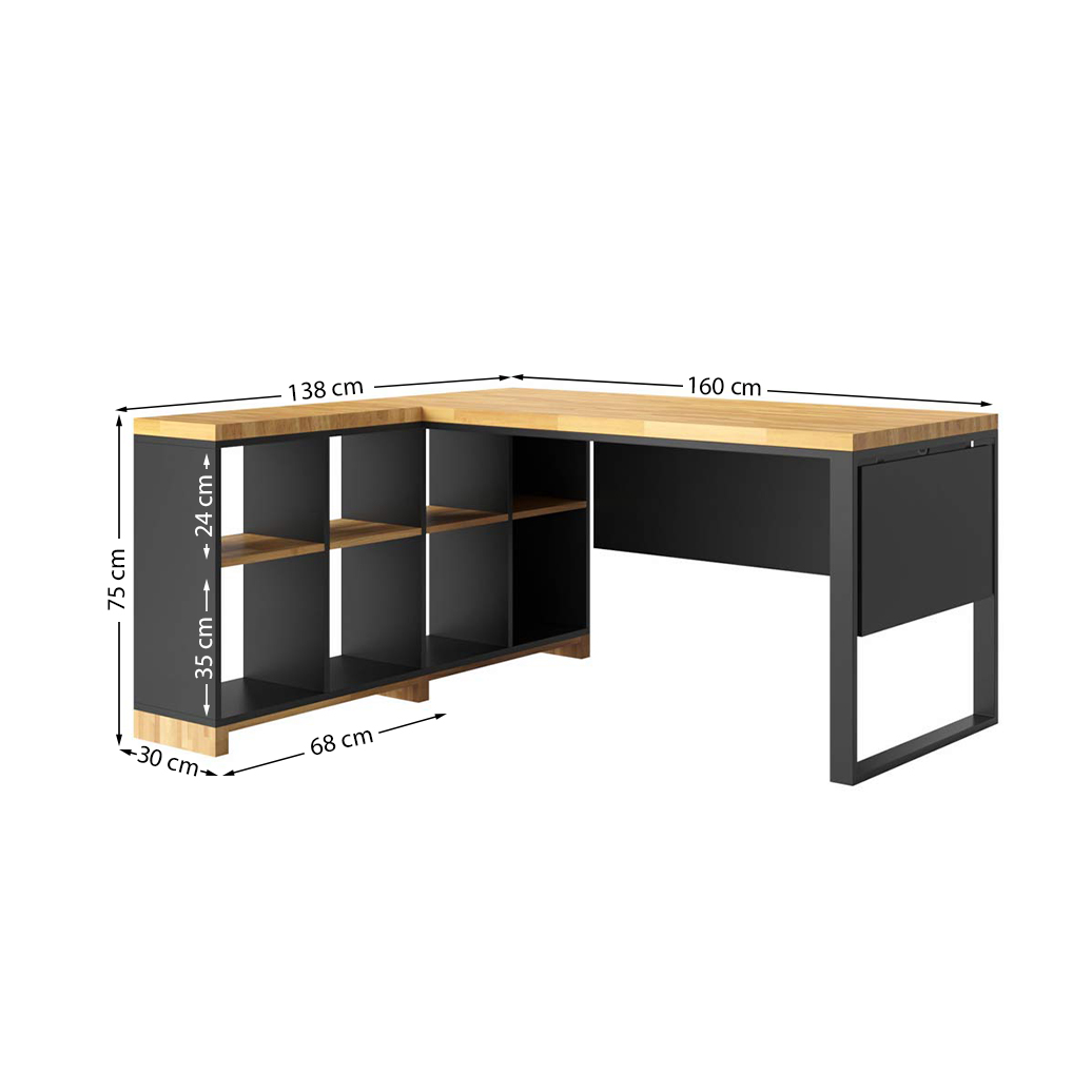 The “modern office” furniture collection is a combination of black matte and wood. The corner desk is available in black and white. The shelves will accommodate not only binders but also many other items that you will always have at hand. Desk, is an important tool for work and study and its quality is largely determined by the material of construction. In this case, the entire top and shelves are natural oak wood. This gives incredible comfort of use and enjoyment of nature.