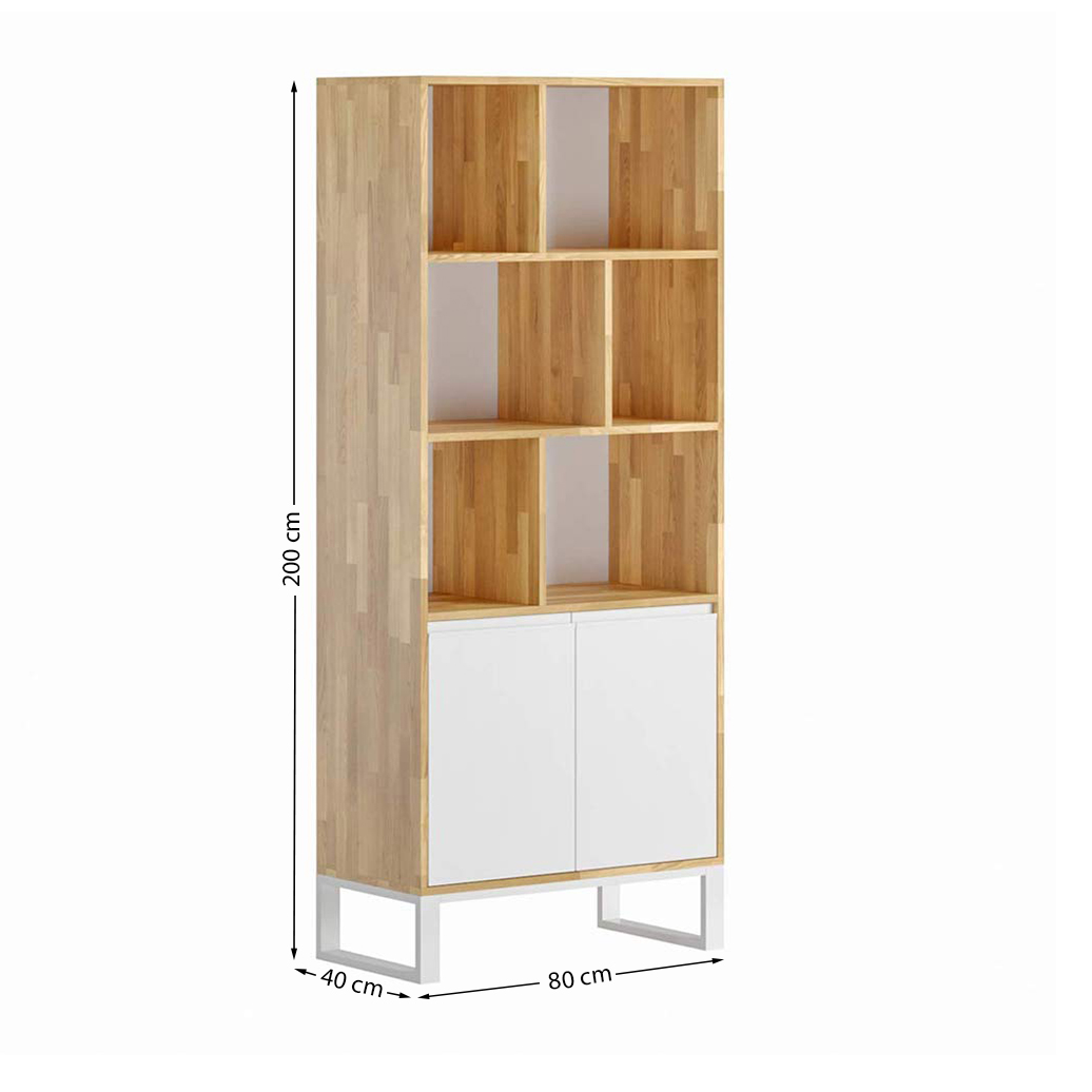 Another release of one of our top products. This time we present a bookcase with shelves made of wood and metal in white. Our office bookcase was created with the highest quality materials, namely natural oak wood and durable powder-coated metal construction.