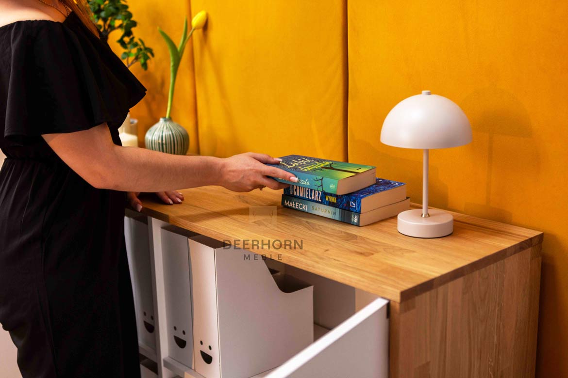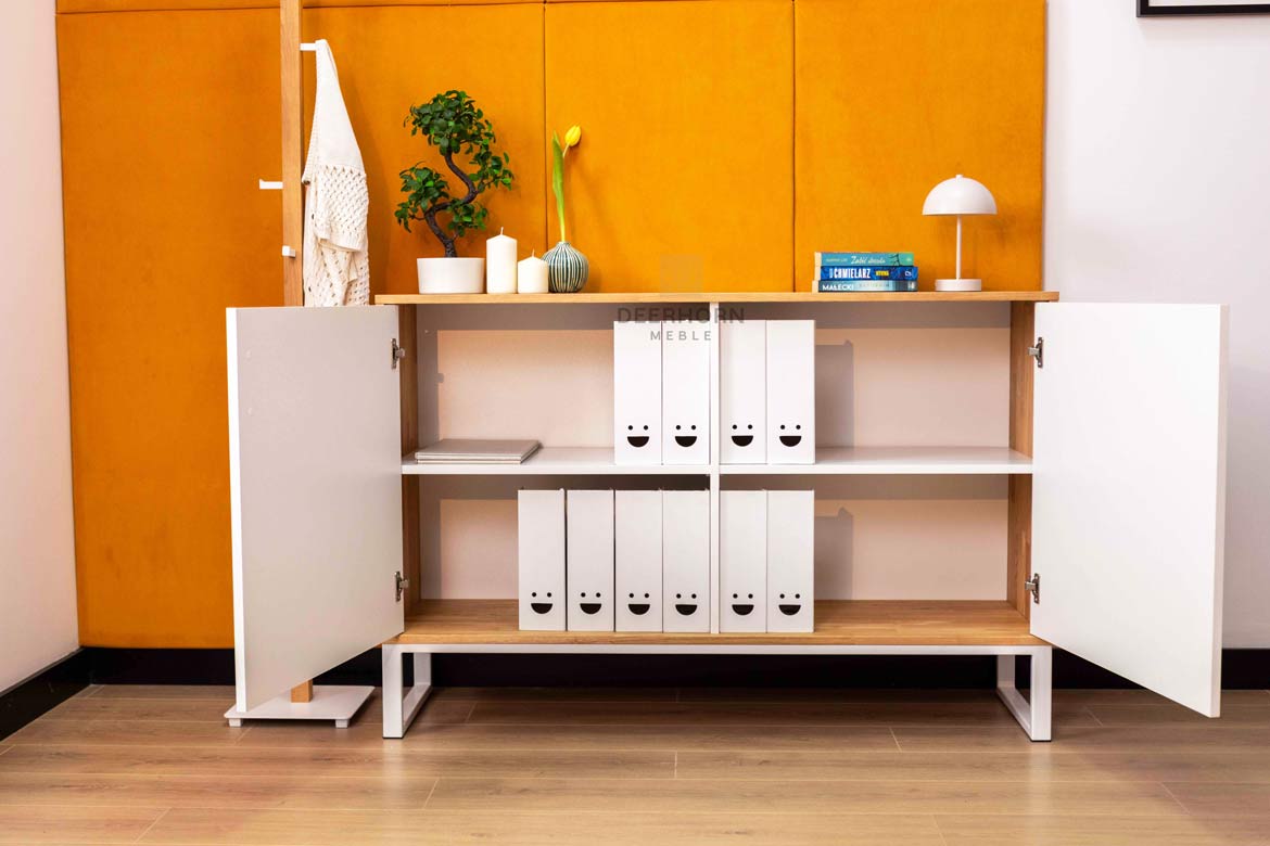 A unique wooden chest of drawers that will meet all your office needs! With spacious shelves for binders and documents, it will help to maintain perfect order, while adding a unique character to the interior. Solid, natural wood and careful workmanship ensure not only functionality, but also elegance that will impress anyone who enters your office. This is the perfect solution for those who value quality, order and a professional appearance. If you want your office to gain a new dimension – this dresser is exactly what you need!