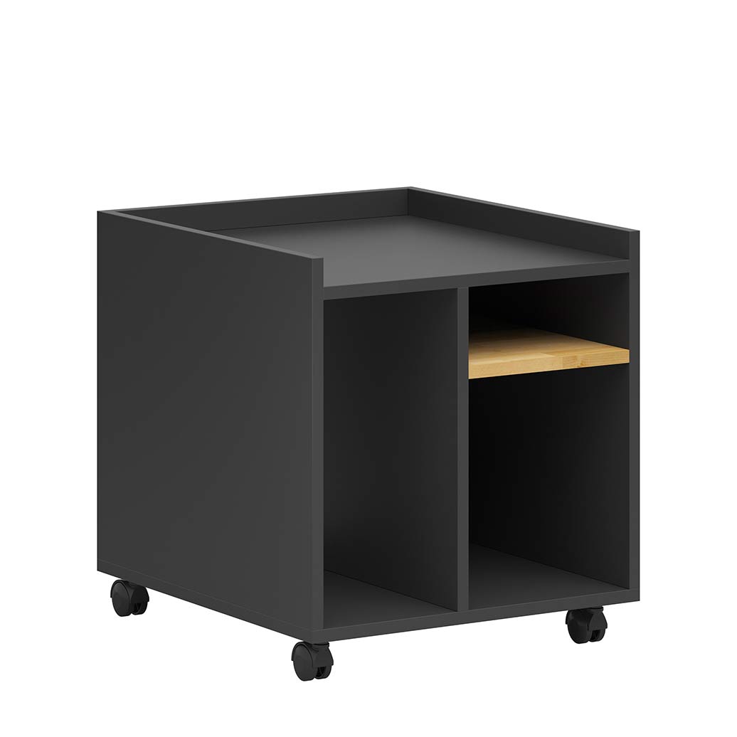 The chest of drawers with natural wood and black fronts is an elegant and sturdy piece of furniture that provides plenty of storage space. Two lockable cabinets make it easy to stay organized, and the metal base guarantees stability. It will prove useful in a living room, office or study as a practical and aesthetic accessory.