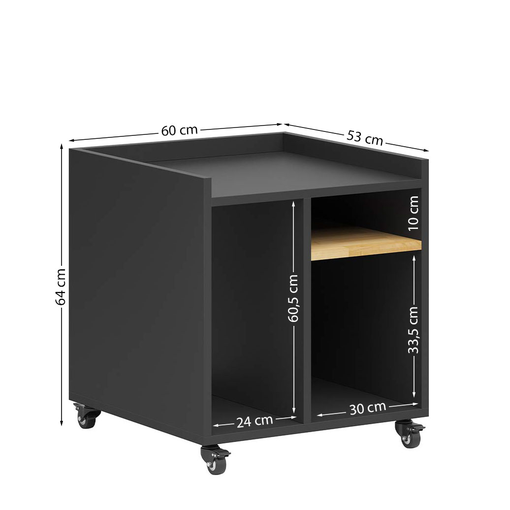 The printer cabinet with wooden shelf will help you better organize your space and make your daily work easier. The printer always stays within reach, and paper and accessories have their own place. The low-profile design will fit under your desk or next to your workstation, and casters allow you to easily move the cabinet where you need it. A wooden shelf provides additional space that can easily hold documents, equipment or other office trinkets. It’s a practical solution that saves time and makes work more convenient.