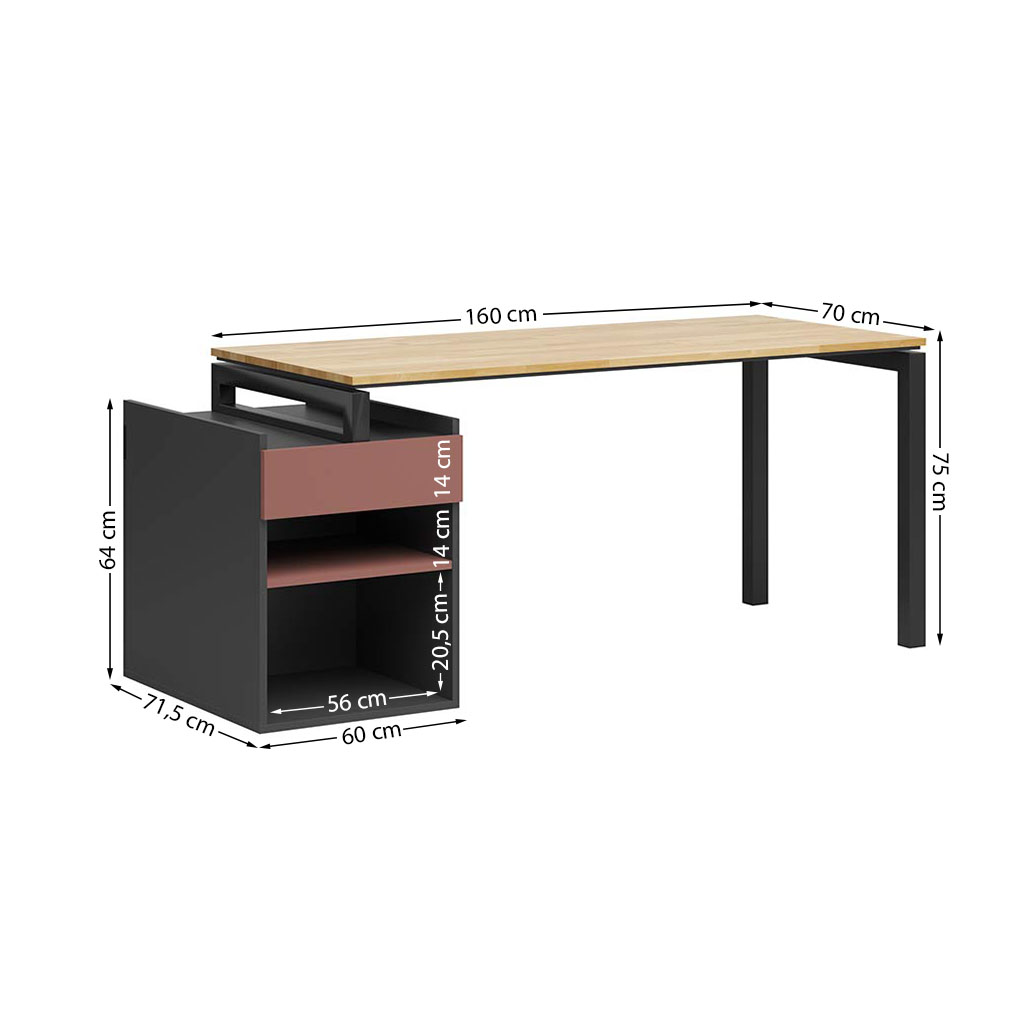 Computer work desk with a pedestal and drawer is a practical solution for people who value order and convenience during their daily duties. The desk provides enough space for a computer, monitor and additional office accessories, and the container with a drawer placed next to it allows you to store documents, utensils and other necessary items within easy reach. The sturdy construction makes the desk stable and durable, and its simple, universal design fits both office interiors and home offices. With this combination, you can create a comfortable workspace that promotes order and better organization of the day.