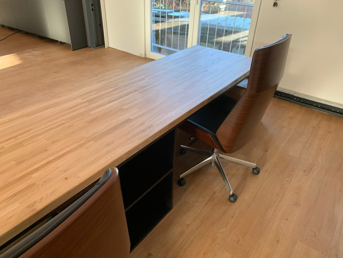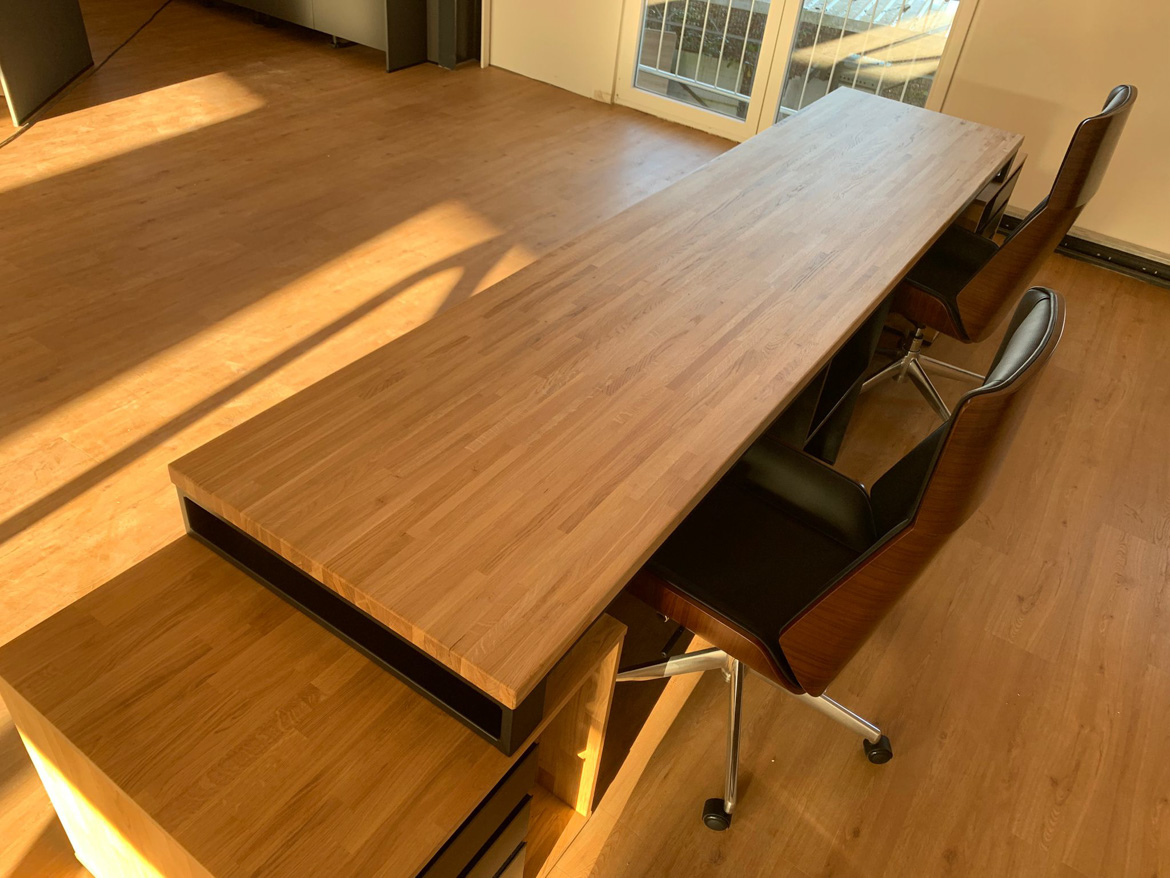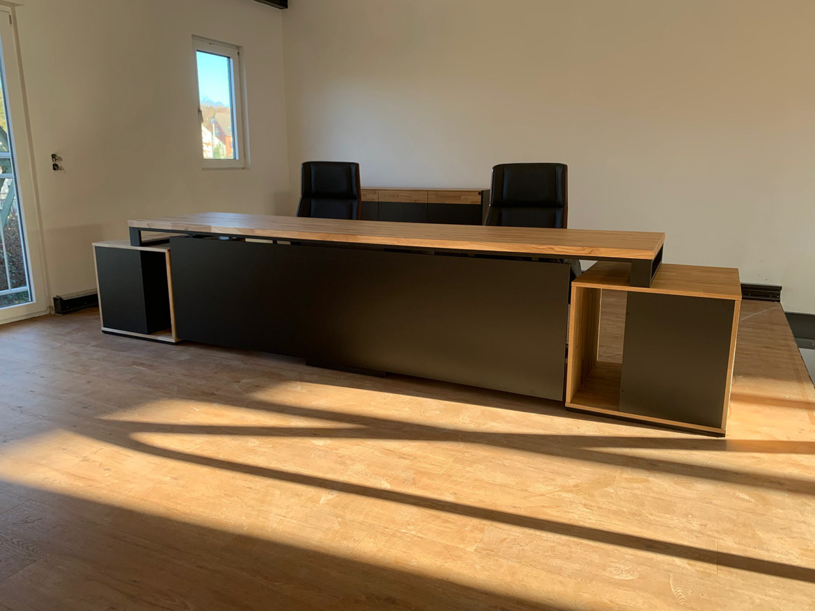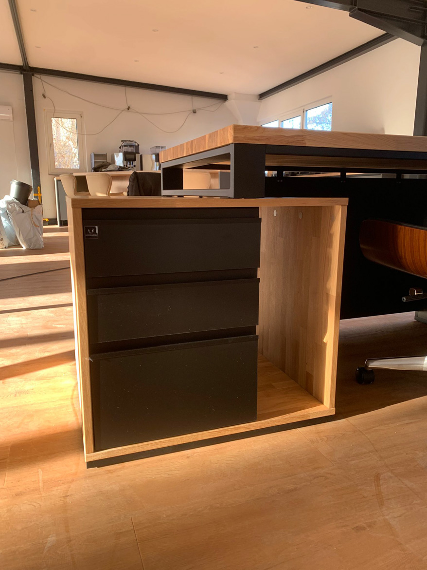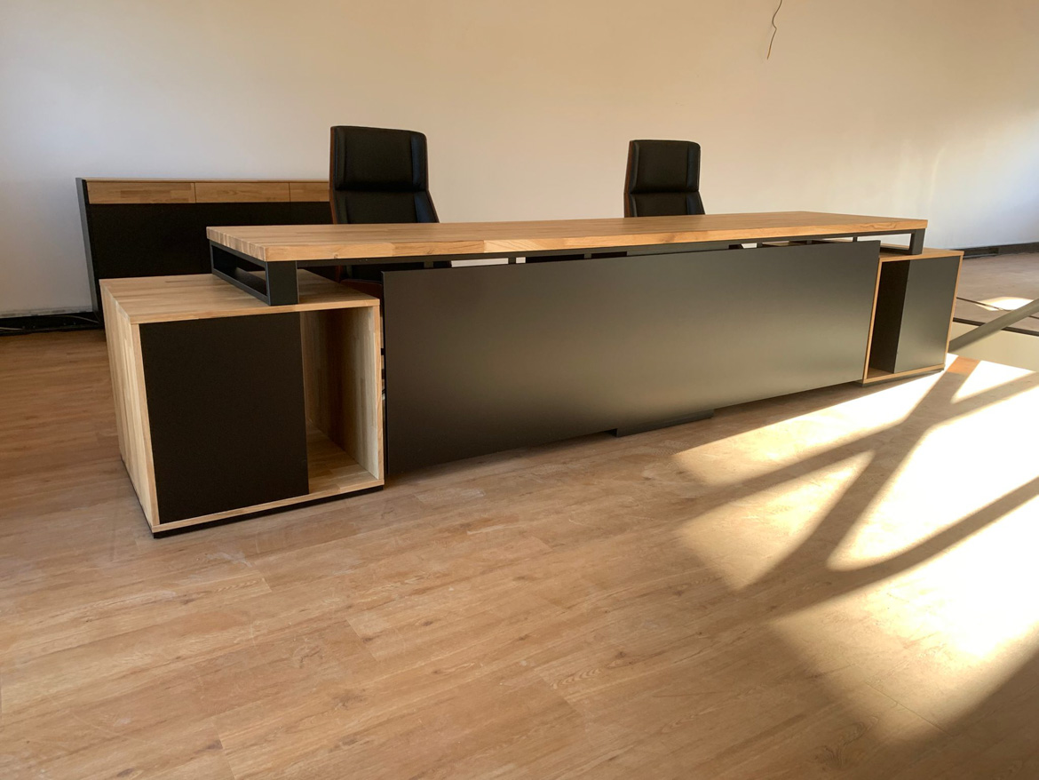 This realization opens a new chapter in our offer. The three-meter double desk with pedestals went to our first customer – Köhnen-Kaffeesysteme from Essen, Germany, a company dealing with professional coffee systems for business.