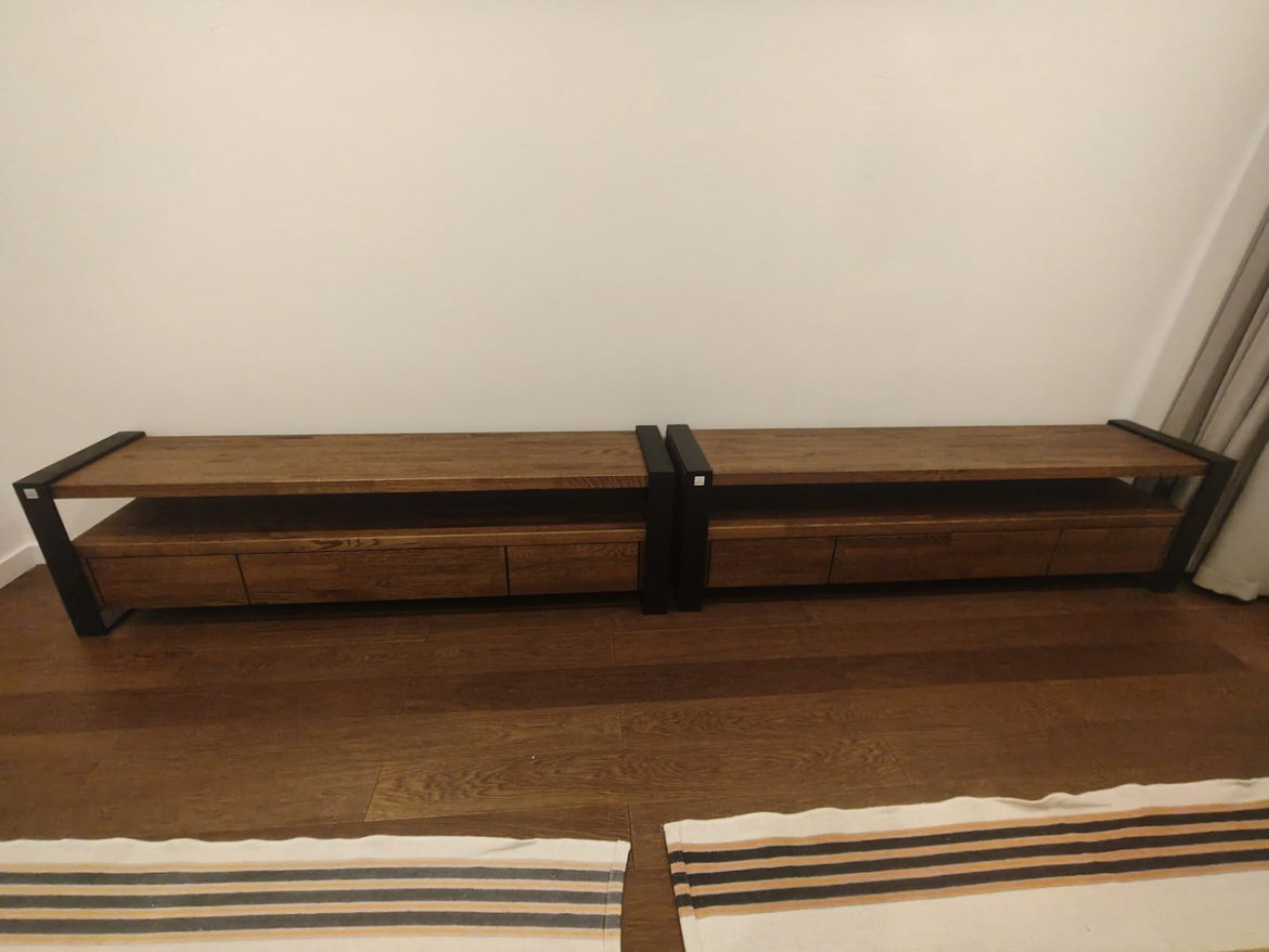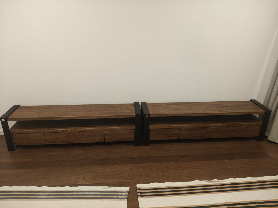 Two RTV cabinets in cuban cigaro wood color for the apartment of Mrs. Lucyna in Lublin