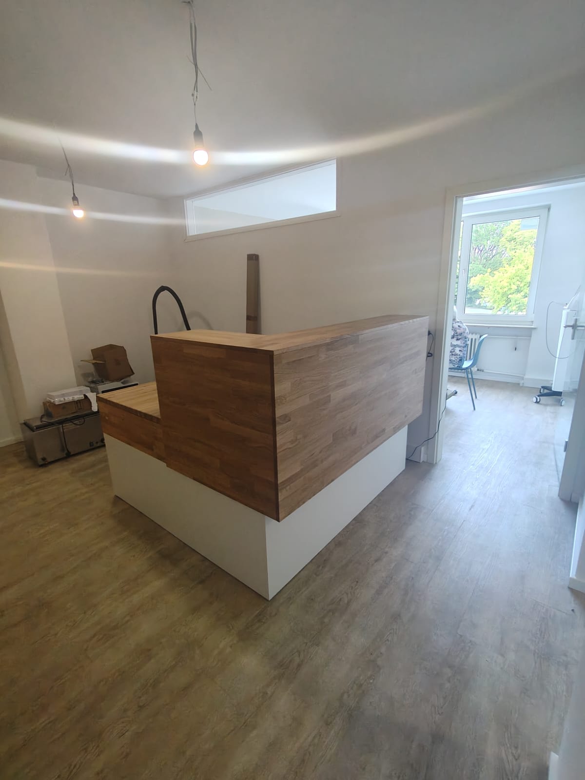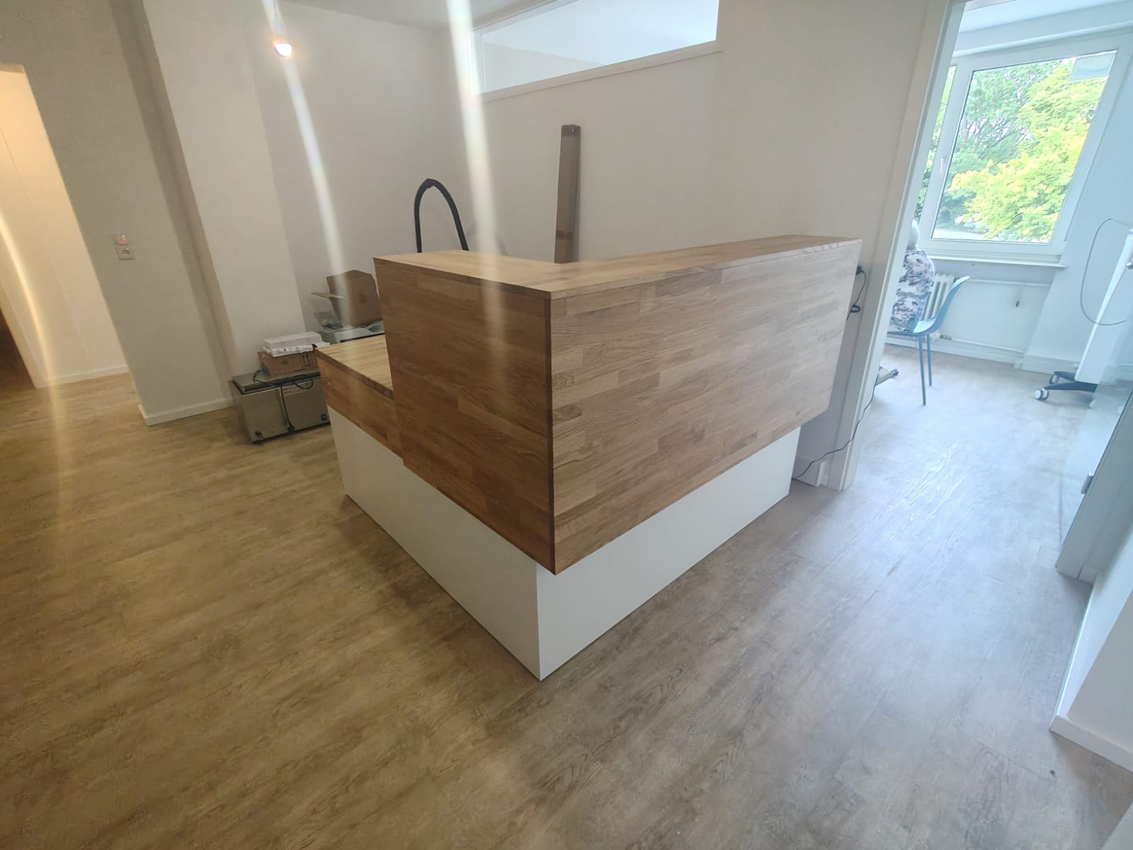 For the German company Gesundheit Wurmtal Praxis für Ergotherapie, we prepared a white reception counter with a wooden top. It’s a facility that provides ergotherapy, which is therapy that supports people after injury, illness or with motor difficulties to return to fitness and independence.