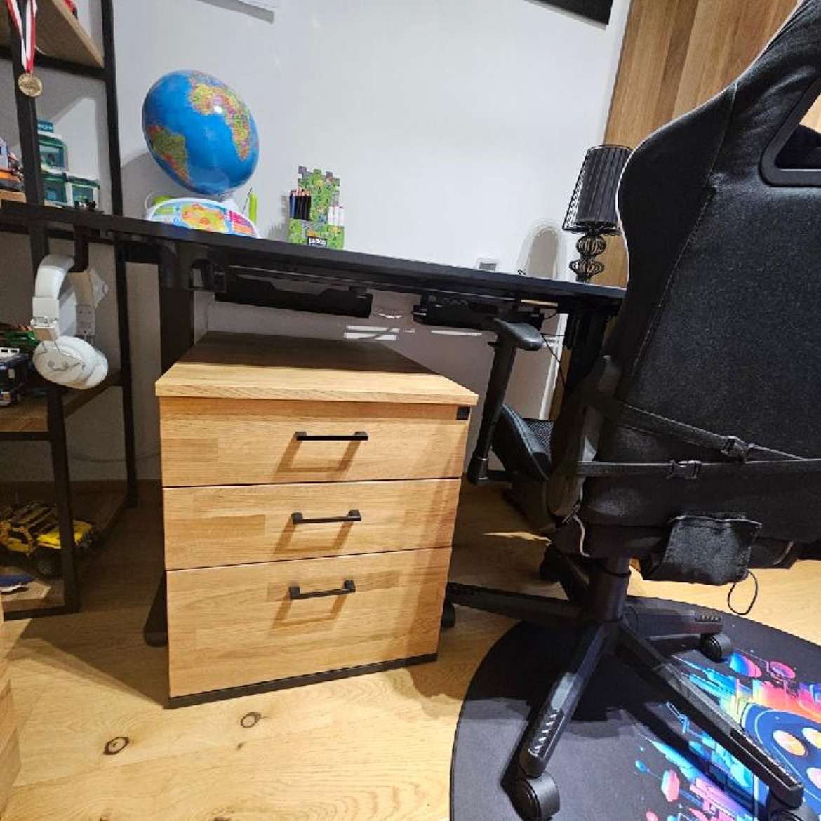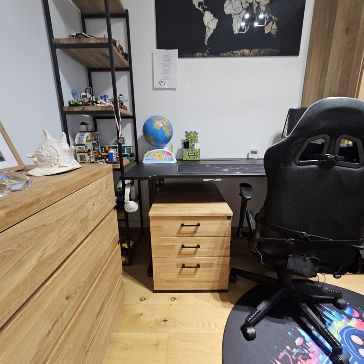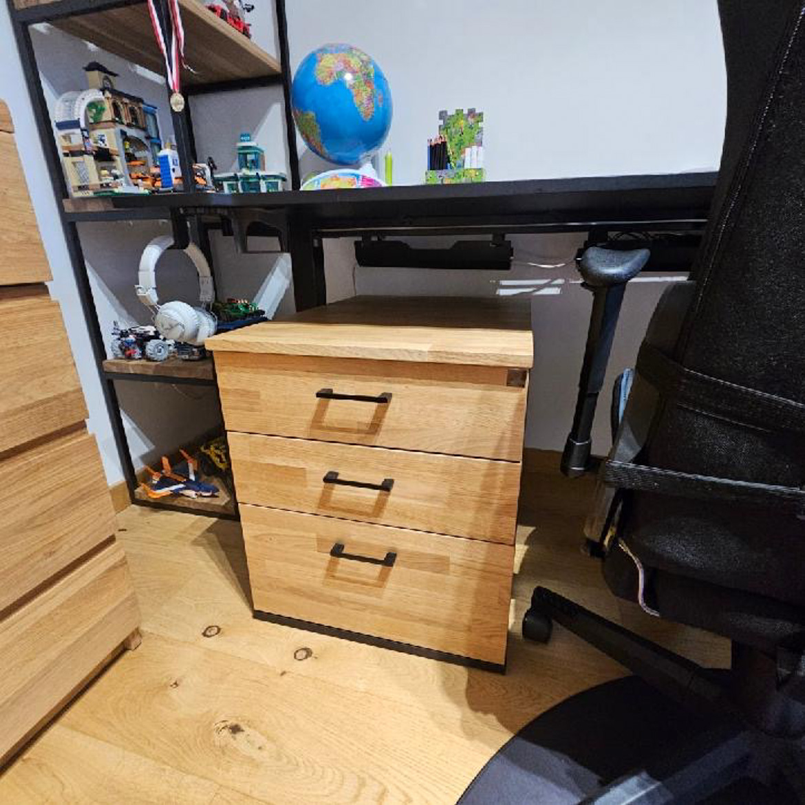 For Mrs. Emilia we prepared a solid oak office pedestal, which is designed not only to facilitate storage, but also to look good in a home office. Three capacious drawers allow you to organize all the most important things, and the natural wood warms up the interior and blends well with the rest of the furniture. Simple, functional and durable – exactly what our client needed.